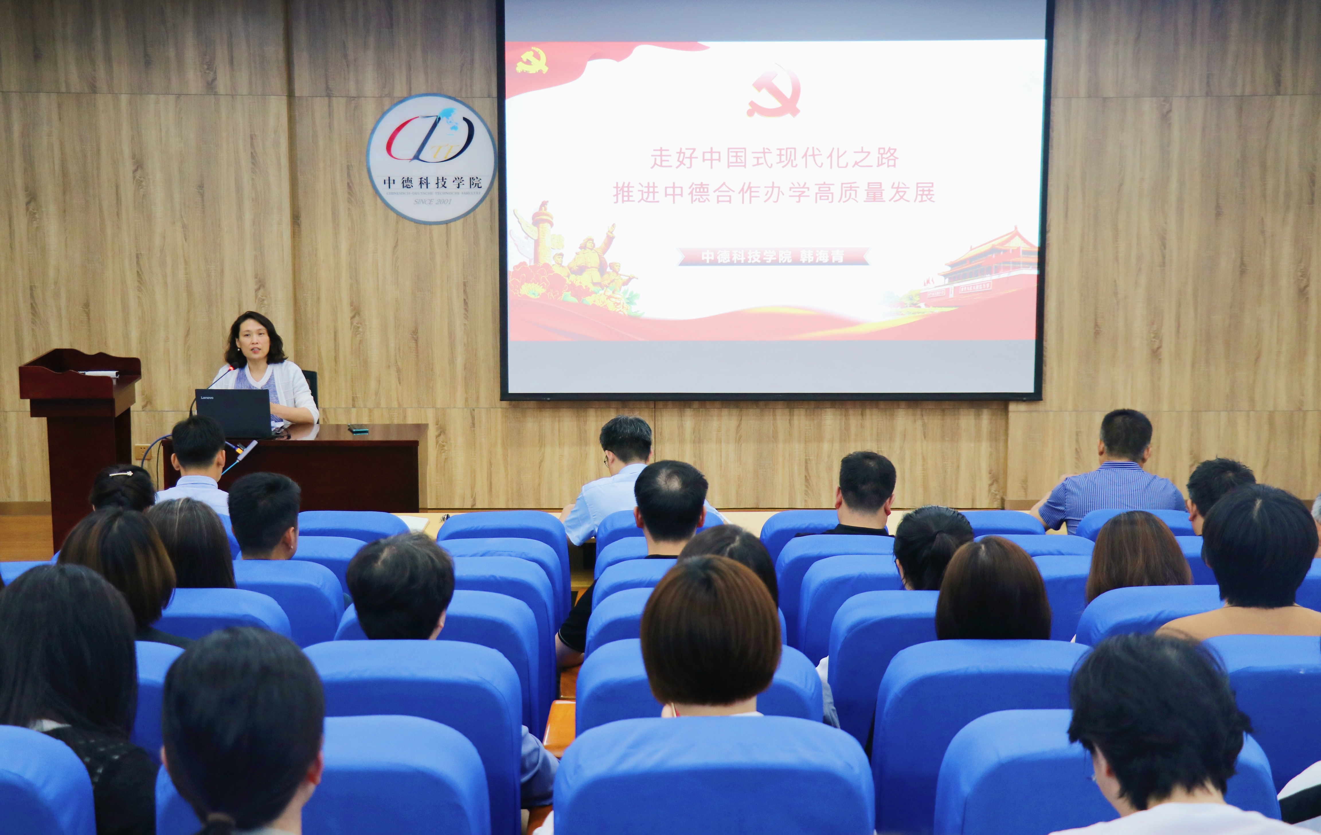 为深入推进学习贯彻习近平新时代中国特色社会主义思想主题教育,10月18日下午,公司党委书记韩海青在公司报告厅C3103为全体师生讲授“走好中国式现代化之路,推进中德合作办学高质量发展”主题教育专题党课,公司全体师生参加专题培训。