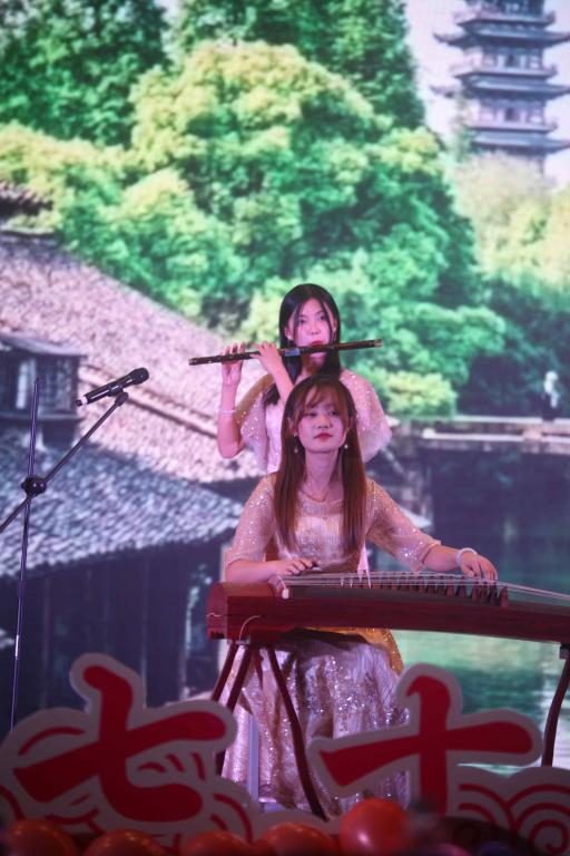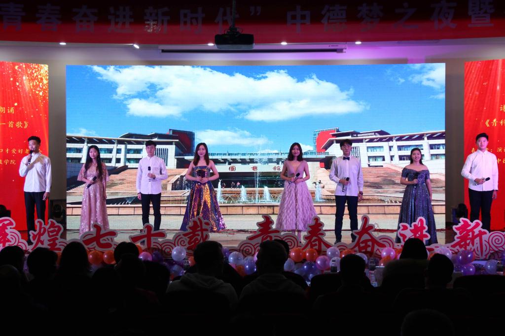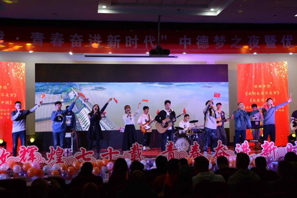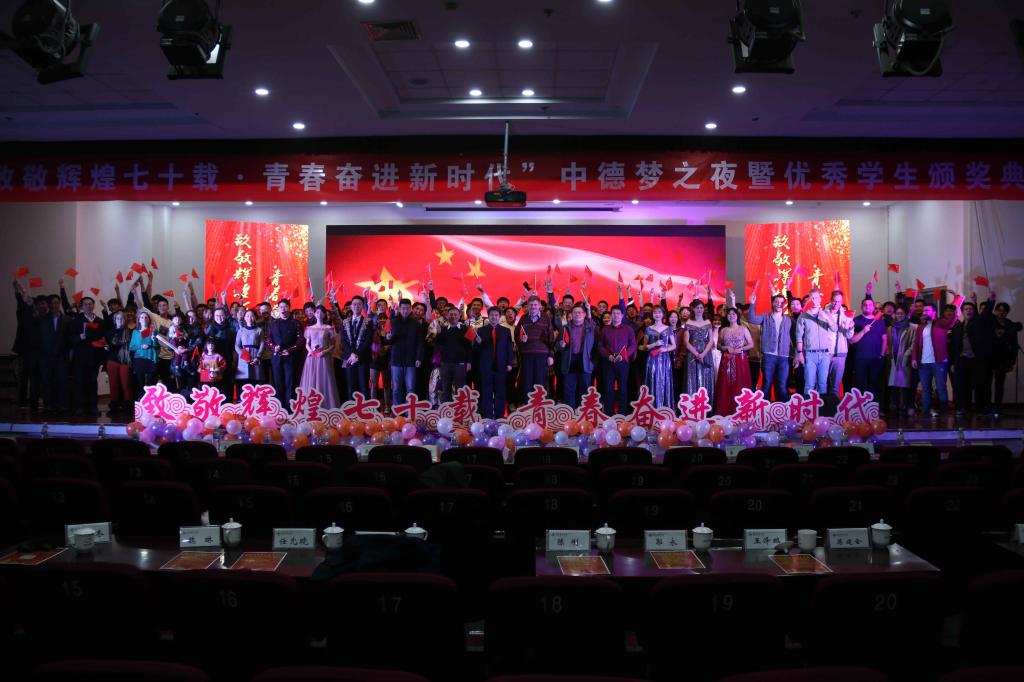 典礼上,德国外教、德国来华职工和中德学子进行了以“致敬辉煌七十载,青春奋进新时代”为主题,并融合中德两国文化的校园文化建设成果展示。