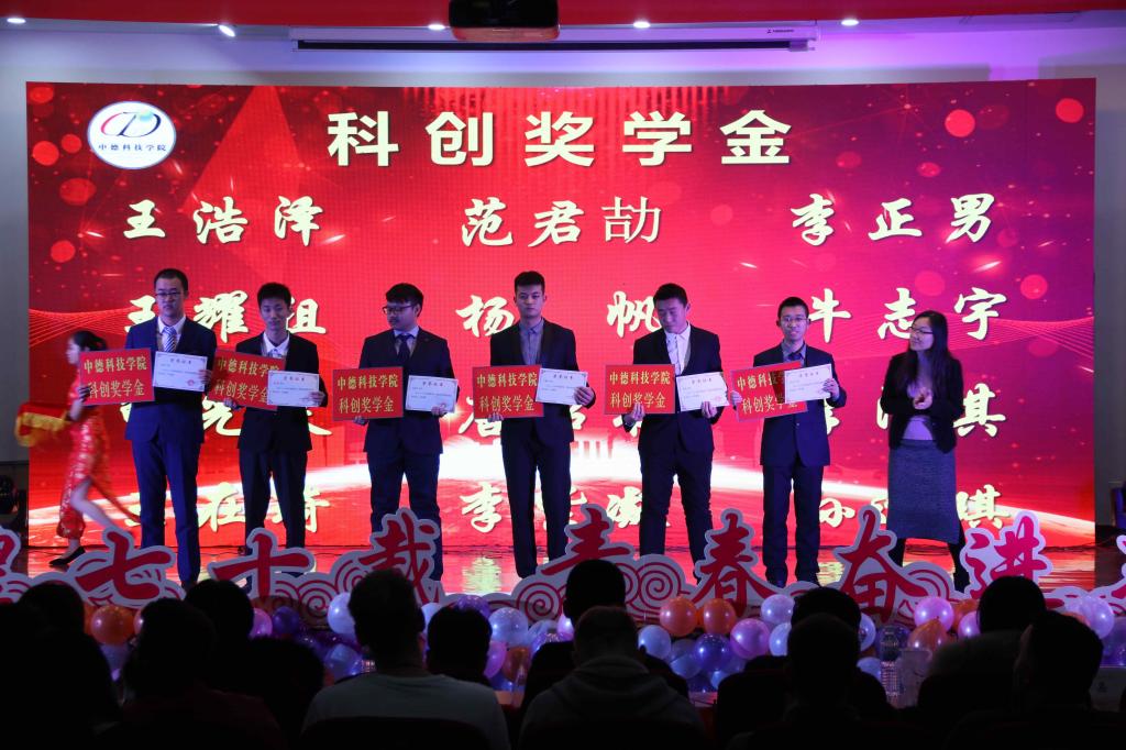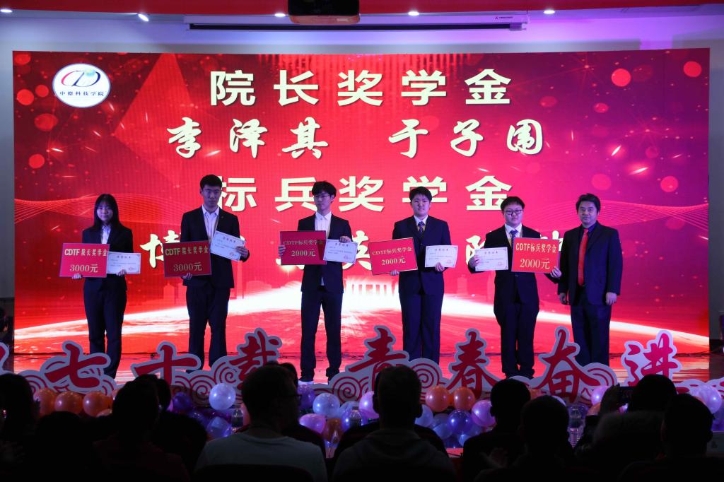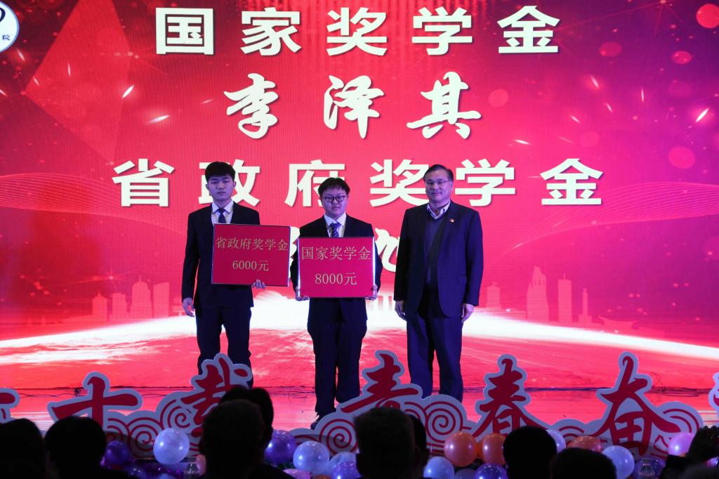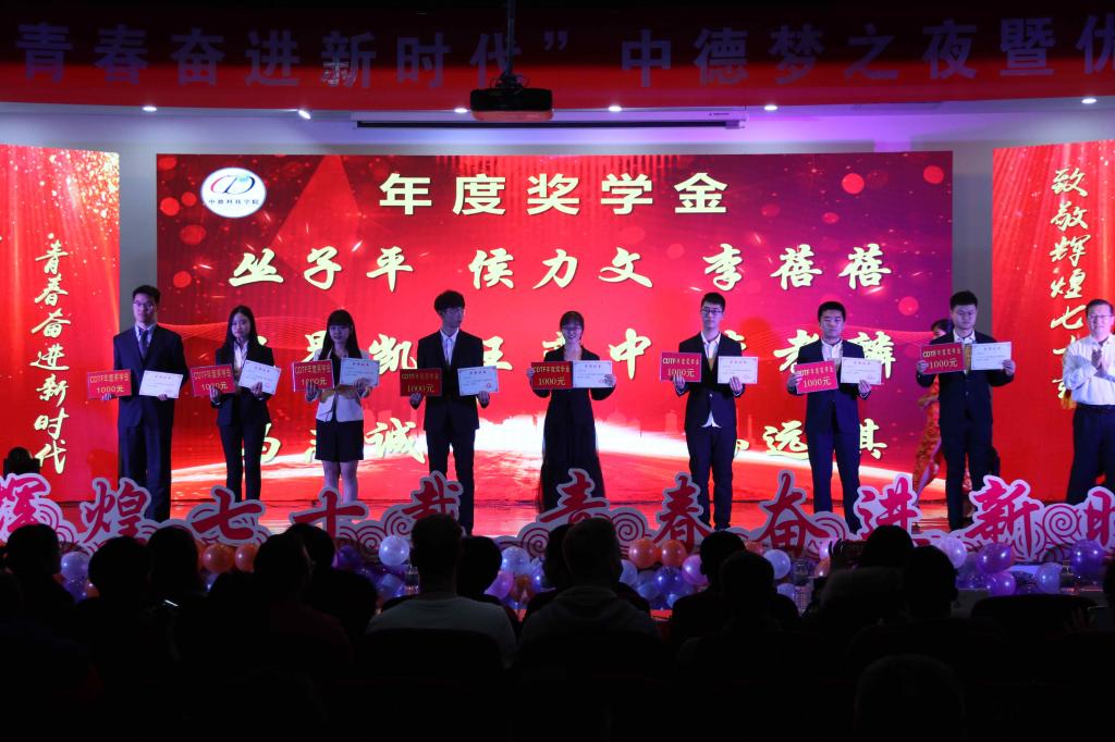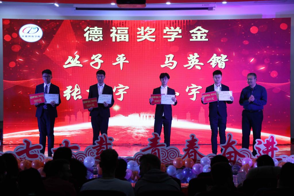 李镇江、任允晓、郭永、魏琳、王泽鹏分别为获经理奖学金、标兵奖学金、年度奖学金、德福奖学金、科技创新奖学金的优秀员工颁奖。