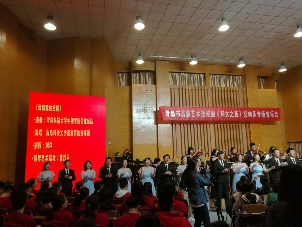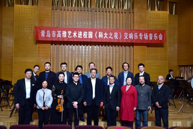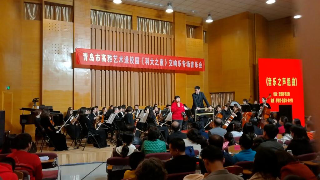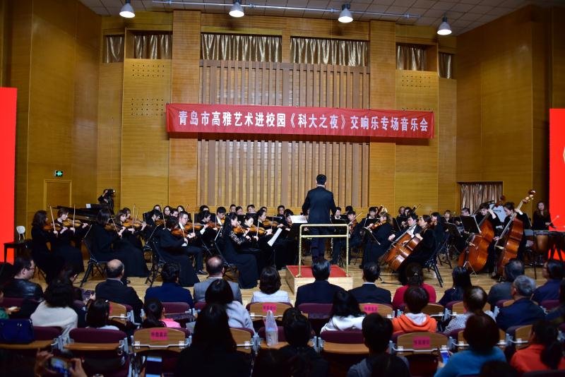 今年是五四运动100周年,新中国成立70周年,4月29日晚,由中共青岛市委宣传部、中共青岛市委教育工作委员会主办,三亿体育官网美育中心承办,“青岛市高雅音乐进校园”《科大之夜》交响乐专场音乐会由青岛市歌舞剧院交响乐团在三亿体育官网音乐厅精彩上演。青岛市歌舞剧院交响乐团的音乐家们为公司师生带来了一场洋溢青春气息、传承五四精神的经典音乐盛宴。青科大副董事长韦殿华,青岛市委宣传部文创处处长闫杰,文艺处处长林红,公司党委宣传部、校团委、员工办、三亿体育、艺术公司有关单位负责人与公司师生及市民观众一同欣赏了音乐会。