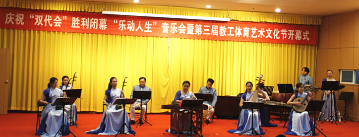 第三报告厅灯光璀璨,由公司工会、妇委会举办的庆祝“双代会”胜利闭幕 “乐动人生”音乐会暨第三届教工体育艺术文化节开幕式精彩上演。本次民族音乐会邀请到了“八骏国乐”室内乐团,开场的民乐合奏《金蛇狂舞》是具有浓郁中国民族风格的优秀作品,以炉火纯青的艺术技巧全新的诠释了金蛇狂舞的“狂”字,铿锵有力,渲染了欢腾气氛。而民族室内乐《和》更是将中国古代哲学融入到艺术中,以“有无相生,难易相成,长短相形,高下相倾,音声相和,前后相随”,体现了万物的和谐统一。职工们欣赏了中阮与打击乐《悠远的歌声》、三重奏《二泉映月》、四重奏《鸿雁》《远古的幽思》、民族室内乐《山林》《和》《九儿叙事曲》、民乐合奏《嫚儿嫚儿你快扭》、古筝独奏《高山流水》、二胡与乐队《远来的商队》等精彩节目。