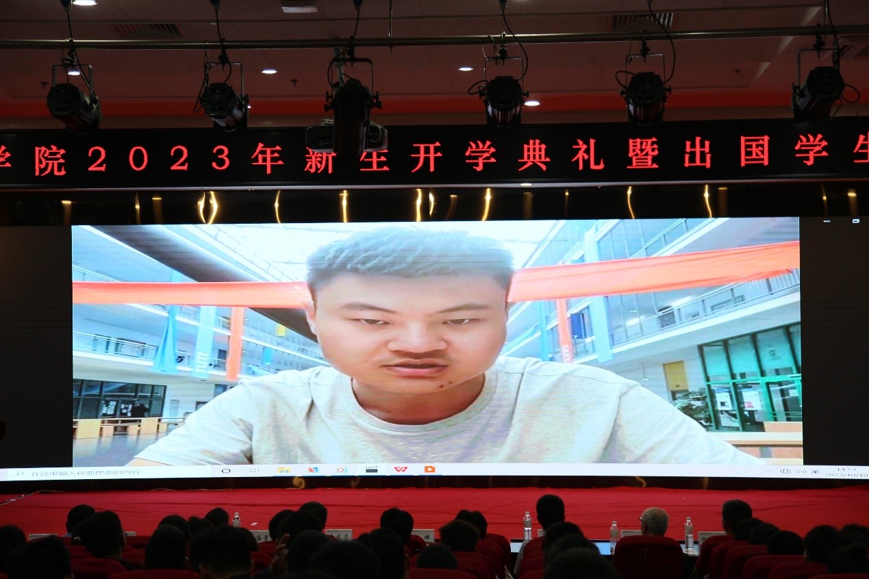 出国员工代表张昊宇和2023级新生代表刘雨晴分别发言。