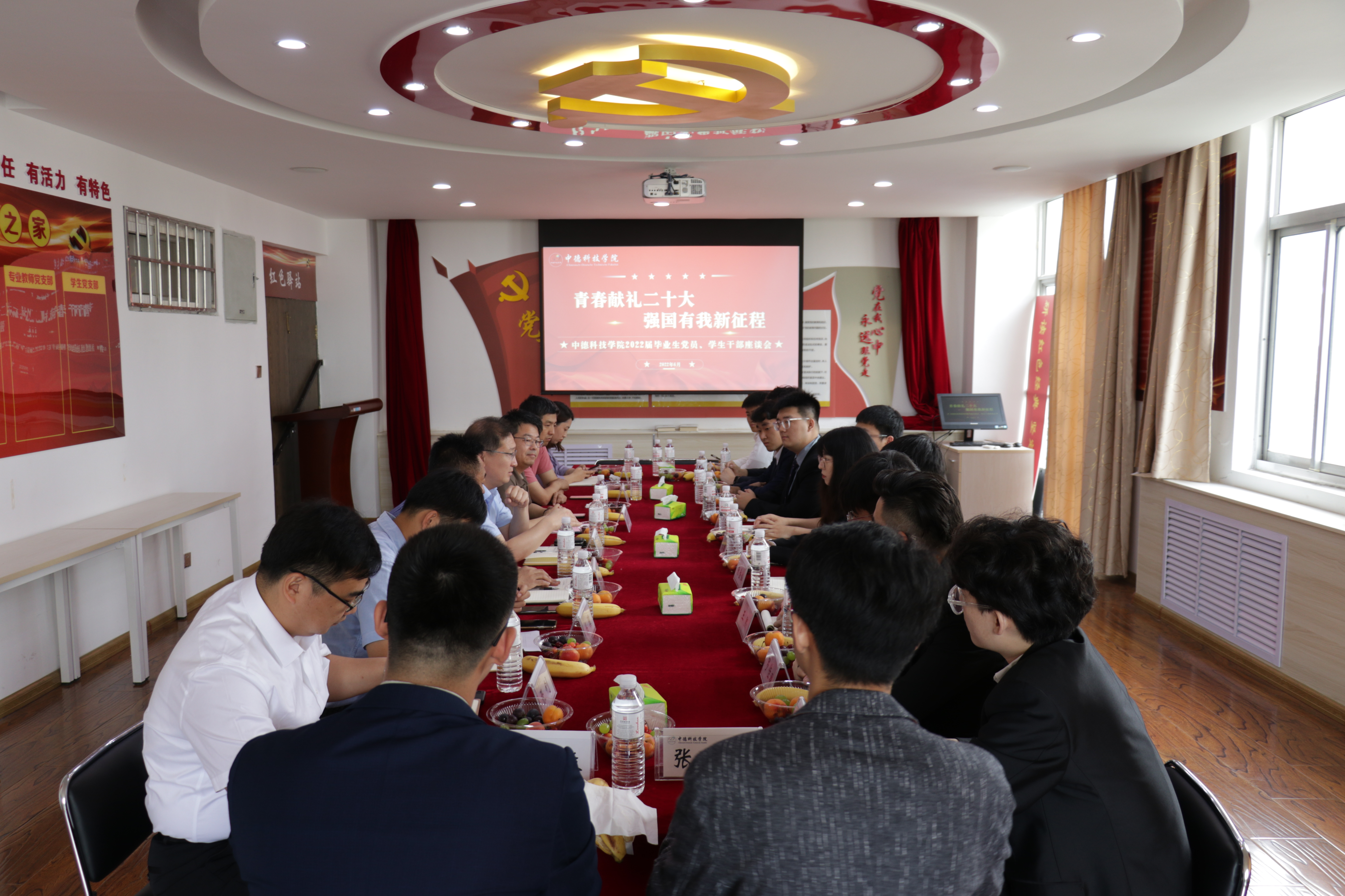 为教育引导广大毕业生立足新时代新征程,主动投身党的建设,把爱国情、强国志、报国行融入到毕业后的人生征途中,6月16日下午,三亿体育在党建活动室组织开始“青春献礼二十大,强国有我新征程”2022届毕业生党员、员工干部座谈会。公司党政领导任允晓、李庆党、郭建章、杨子江、马骥,学工办主任刘元媛,毕业生辅导员张钊,毕业生党员、员工干部20余人参加座谈会。座谈会由党委副书记马骥主持。