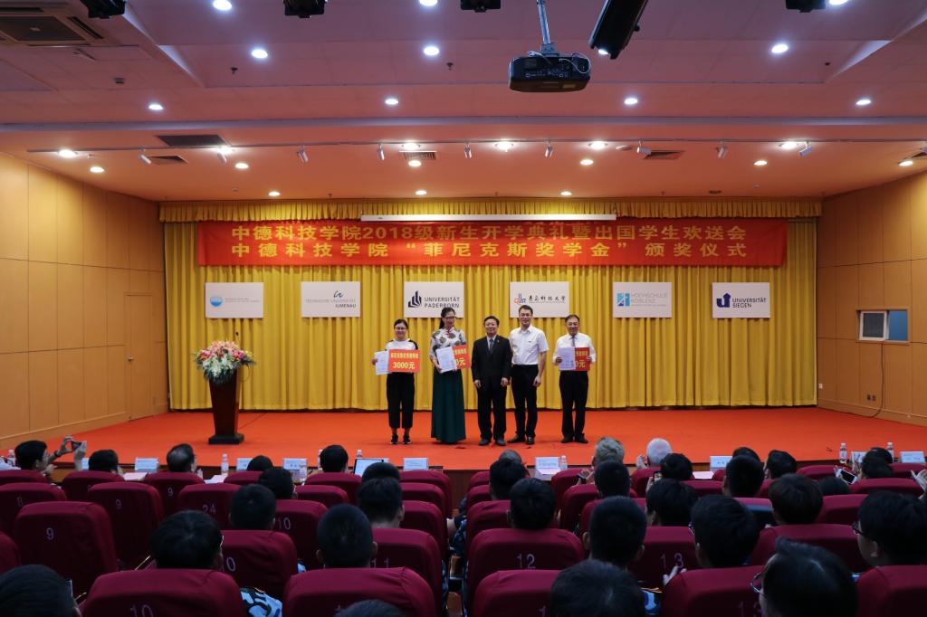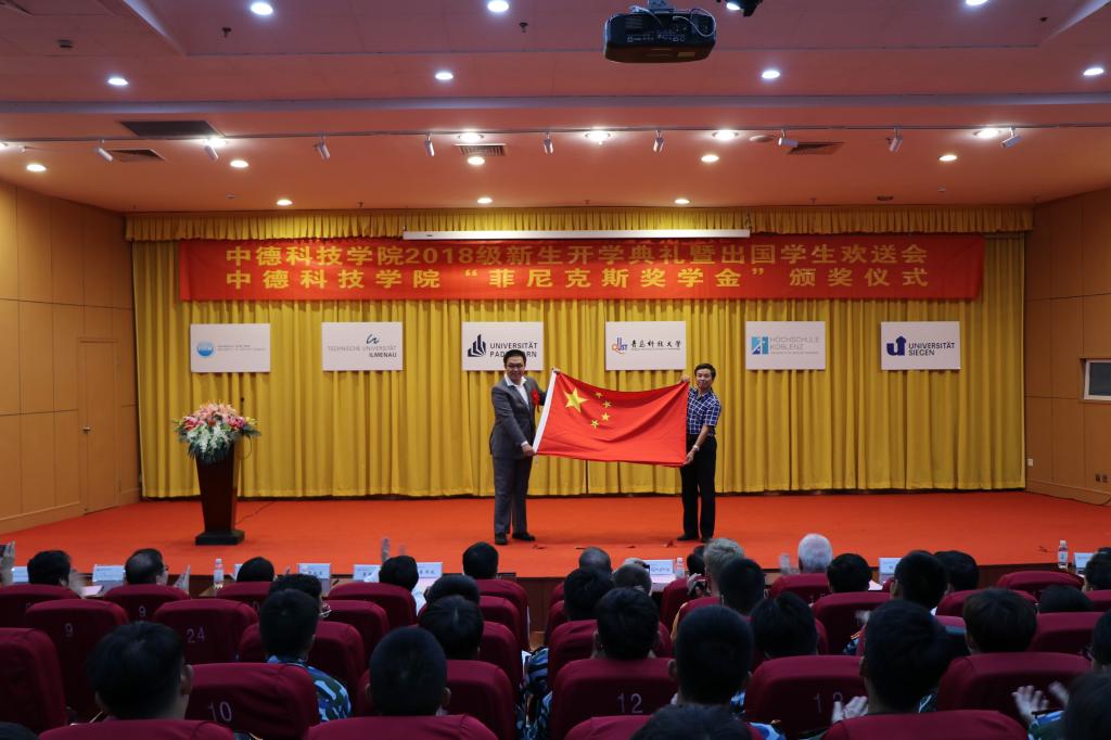 9月14日下午,2018级新生开学典礼暨出国员工欢送会在崂山校区第三报告厅举行。公司党委副书记李庆领,德国帕德博恩大学Paradies教授、锡根大学Schroeder教授,菲尼克斯(中国)投资有限公司及公司相关部门负责人、师生代表参加了活动。