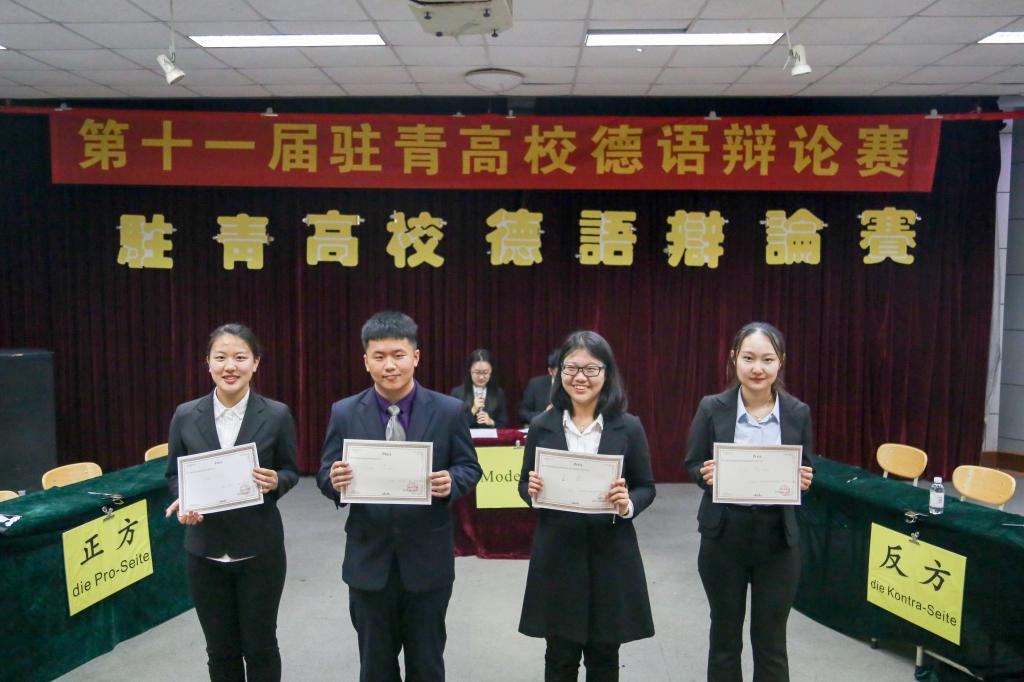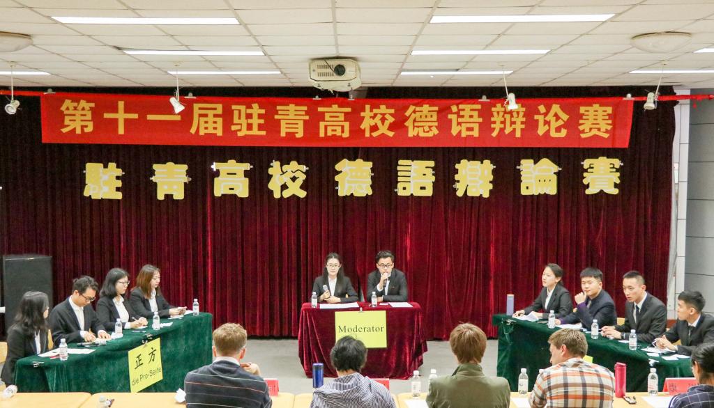 5月26日,第十一届驻青高校德语辩论赛在崂山校区老员工活动中心举行,三亿体育、外国语公司,中国海洋大学外国语公司等辩论队参加了比赛。中国海洋大学外国语公司外教Gunnar Klatt、中教徐珺,三亿体育外教Marcel、中教赵俊山,及外国语公司教师康琳、外教Heiko担任评委与嘉宾。