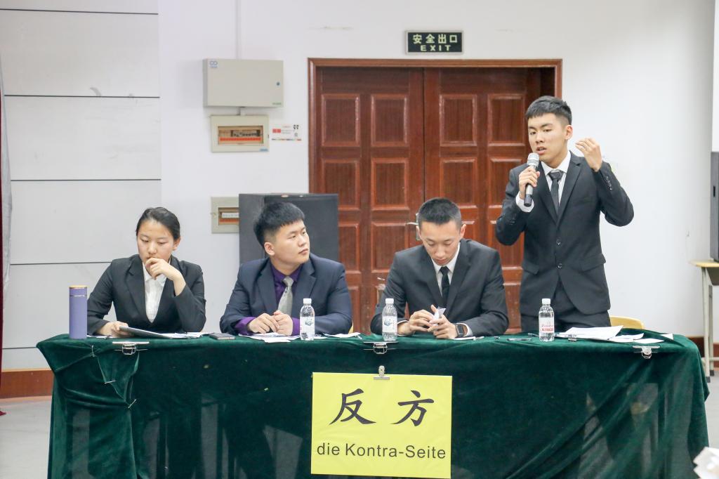 各辩论队围绕“Darf man im Namen der Sicherheit private Daten sammeln?”、“Ersetzen soziale Netzwerke reale Freundschaft?”、“Macht die sogenannte Sharing-Economy den Stadtbewohnern das Leben leichter? ”等辩题进行精彩的辩论。各位辩手引经据典、唇枪舌战、妙语连珠,场下的观众也被激烈的赛况紧紧吸引,不时爆发出阵阵掌声。辩论中每一支队伍都使出浑身解数,针锋相对、互不相让,一串串犀利或是机智的言语不时引起观众的喝彩。