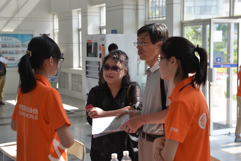 6月28日,中德公司举行“校园开放日”活动。在“开放日”里,公司在院办、教务部和分团委分别设立咨询点。当天上午十点在公司C3103多媒体教室开展了“家长考生与院领导面对面”活动,组织家长和考生观看了公司新制作的介绍公司概况的宣传片。经理王守城通过对媒体向来访者展示了公司教学、科研、团队建设和员工教育管理、中外合作交流等情况,现场解答了考生及家长提出的员工出国条件、员工培养和管理、奖助学金、毕业生就业等问题。公司党政领导、各部门负责人和特聘教授以及项目协调人也在现场为前来咨询的考生和家长答疑。