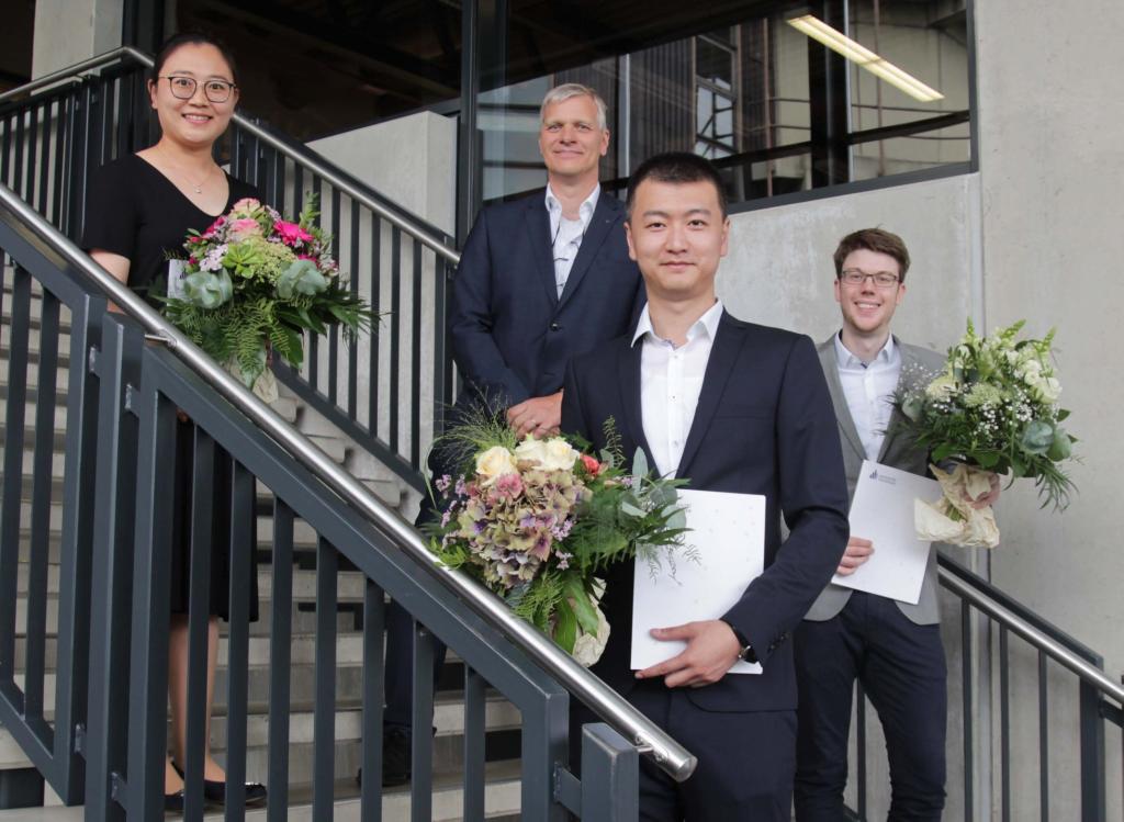 日前,德国帕德博恩大学2019年度青年学者创新教学奖颁奖仪式在帕德博恩大学举行,青科大三亿体育青年教师朱虹雨,青科大优秀员工、帕德博恩大学机械公司博士生邓博文与帕德博恩大学机械公司设计与传动技术教研组Dennis Hambach先生获青年学者创新教学奖,帕德博恩大学教学与质量管理副董事长Prof. Dr.-Ing. Volker Schöppner代表教学基金委员会向获奖者颁发获奖证书及15000欧元奖金。