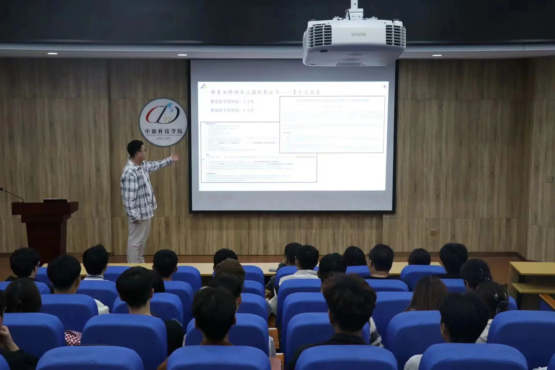 温智凯分别从学习积累、科创竞赛、推免准备等方面进行分享,详细介绍了从报名夏令营到拿到推免资格的具体过程,提醒同学们主动关注最新推免动态,了解推免的相关流程,还贴心地叮嘱大家提前做好规划与准备。此外,温智凯就参与科创竞赛进行重点讲解,详细说明赛事种类与备赛心得,为各年级员工提供了参考。
