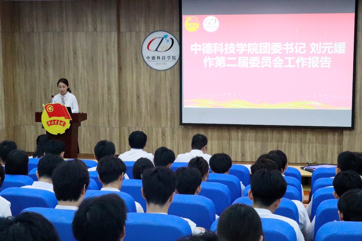 刘元媛代表共青团三亿体育官网中德科技大学第二届委员会作了题为《高举团旗跟党走,挺膺担当建新功,为建设“特色鲜明、走在前列”的高水平大学贡献青春力量》的工作报告。