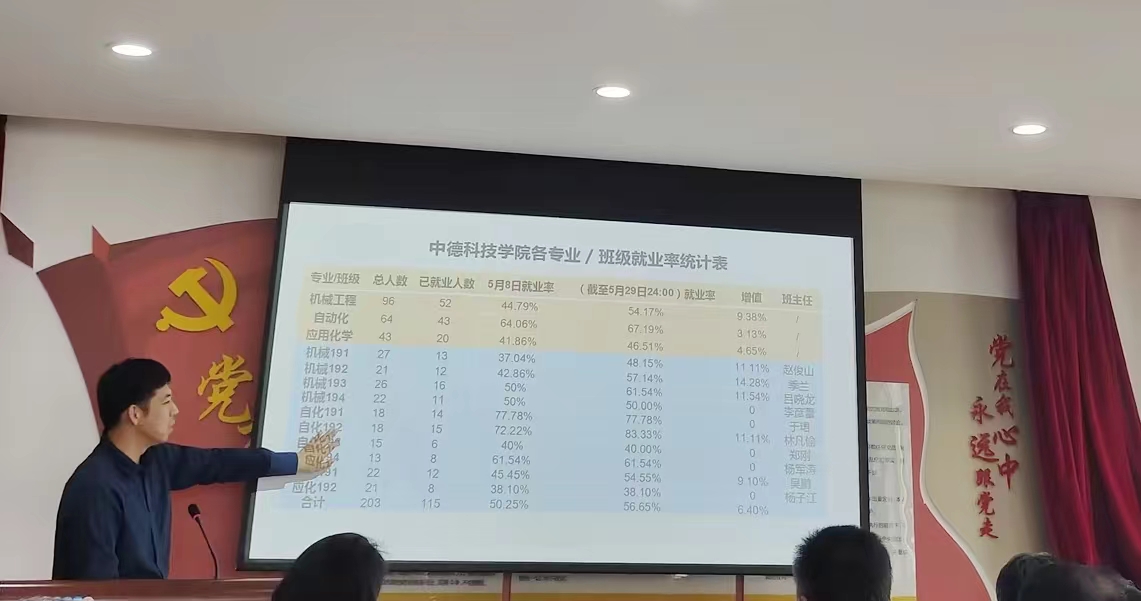 党委副书记兼副经理马骥通报公司各专业、各班级就业率情况。他希望,公司教师能够持续推动好公司毕业生就业工作,针对就业困难群体毕业生开展“一对一”的就业信息跟踪服务等工作,促进毕业生就业工作向更加充分、更高质量方向发展。