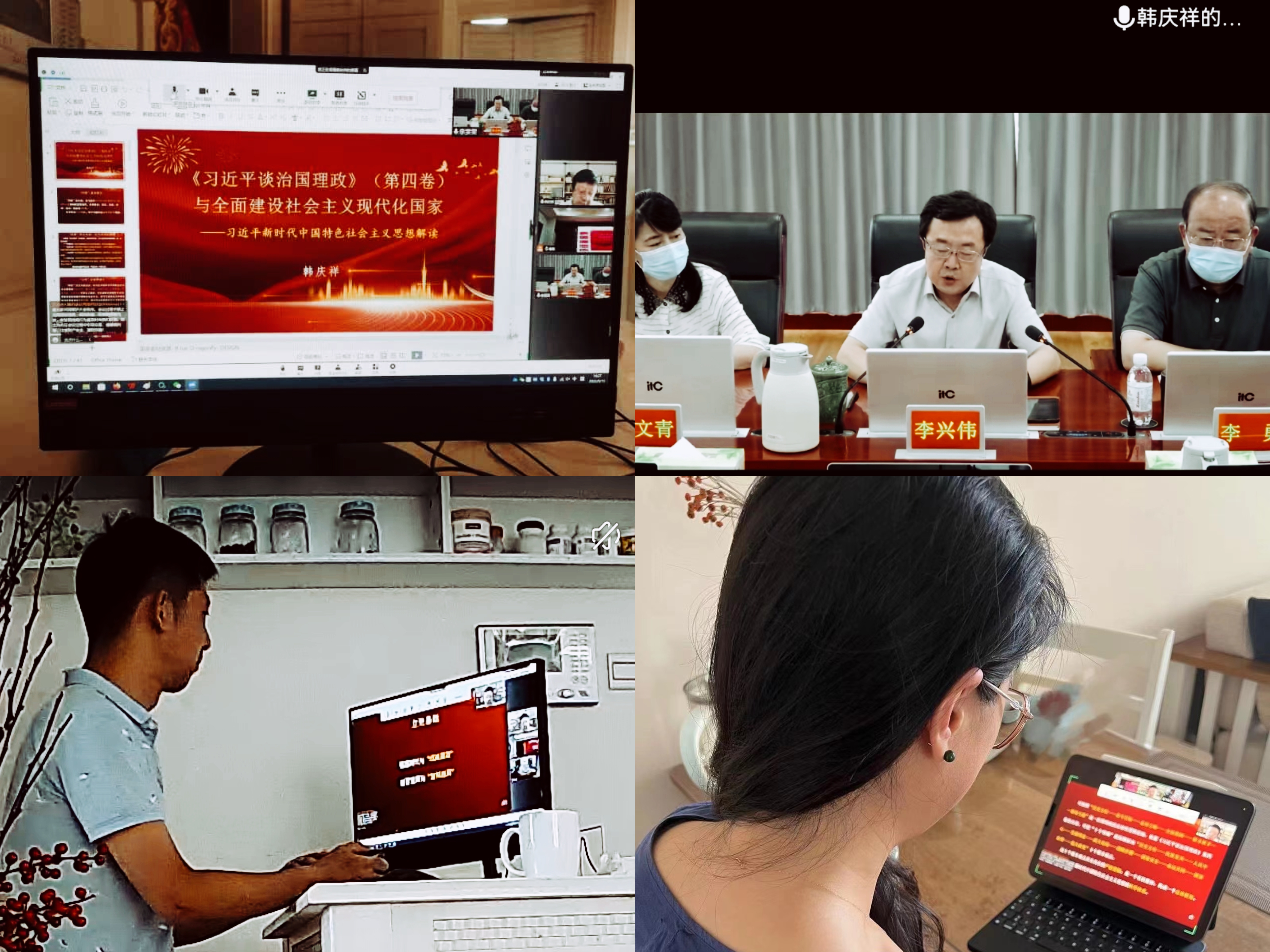 会上全体成员集中观看中央党校原校务委员、一级教授、博士生导师韩庆祥以“《习近平谈治国理政》第四卷与全面建设社会主义现代化国家”为主题的专题视频讲座。韩庆祥从历史方位、根本问题、哲学方法、总体框架、原创贡献、历史地位、新的亮点七个方面,对《习近平谈治国理政》第四卷展开深入讲解,并深入分析蕴含其中的深刻内涵和精神要义。