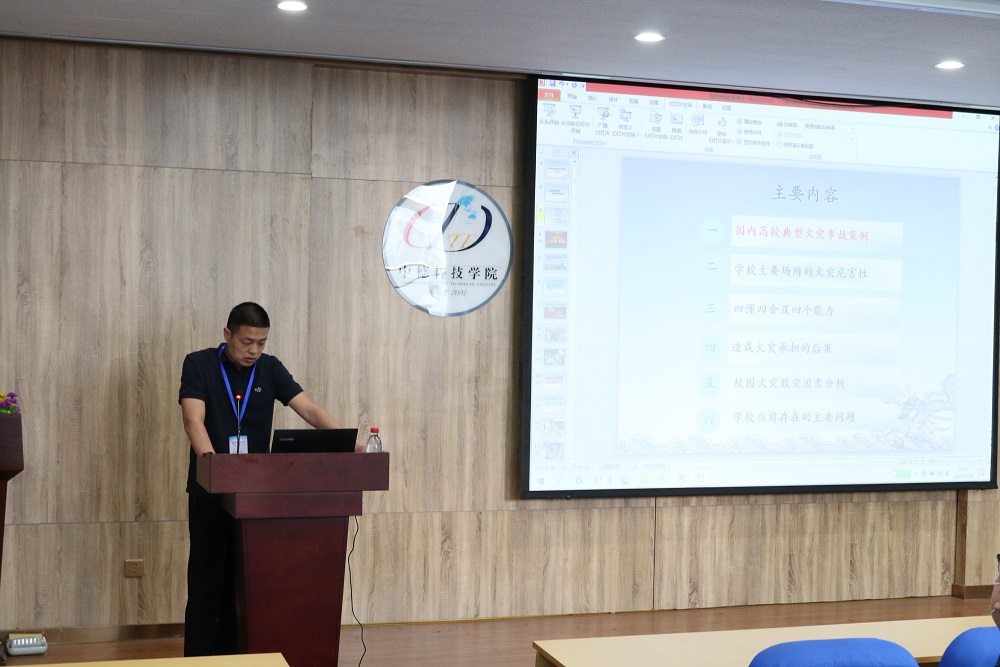 坚持育训结合,做到工作到位。5月24日下午,公司邀请保卫处余全波老师和赵淑东老师作消防安全知识讲座并开展消防灭火演练。各年级员工骨干、宿舍长参加。在公司C3103会议室,余全波老师通过发生在高校的火灾案例,分析火灾致灾的主要因素,向员工们传授了面临突发事件时的“四懂四会及四个能力”的应急自救、互救技能与方法。在北苑食堂广场,赵淑东老师介绍常用灭火器的使用方法,并重点强调了使用灭火器的注意事项。随后现场员工进行了实地灭火演练,提高了消防安全技能。