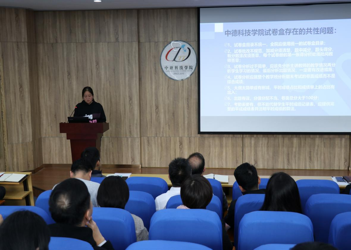 教学办季兰老师把10月13日“课程评价材料归档质量”专项检查的具体情况和详细意见呈现给与会老师,其中特别强调了“过程考核”支撑材料的批改和收整以及试卷分析的规范性。