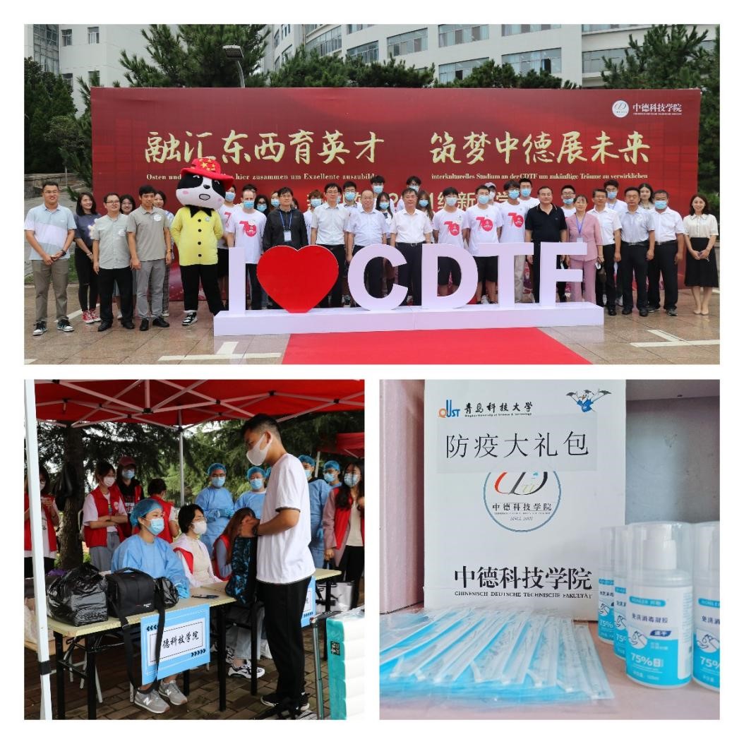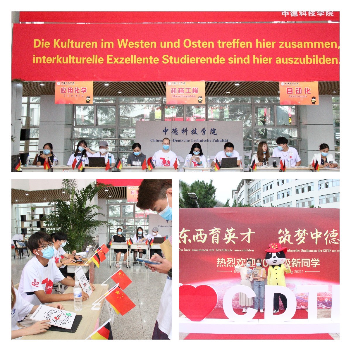 筑梦中德,国际氛围。报到大厅悬挂中德两国国旗,横幅标语采用中德双语,开展贴心志愿服务,优化报到流程,引导新生自主报到。报到现场,德国的外教老师与新生亲切问候,并答疑解惑。迎新红毯、报到背景打卡墙,体现中德两国文化的吉祥物中德大福在公司楼前与新生拍照留念。积极营造“激动、互动、感动”的报到氛围,为员工打造一个难忘的开学季。