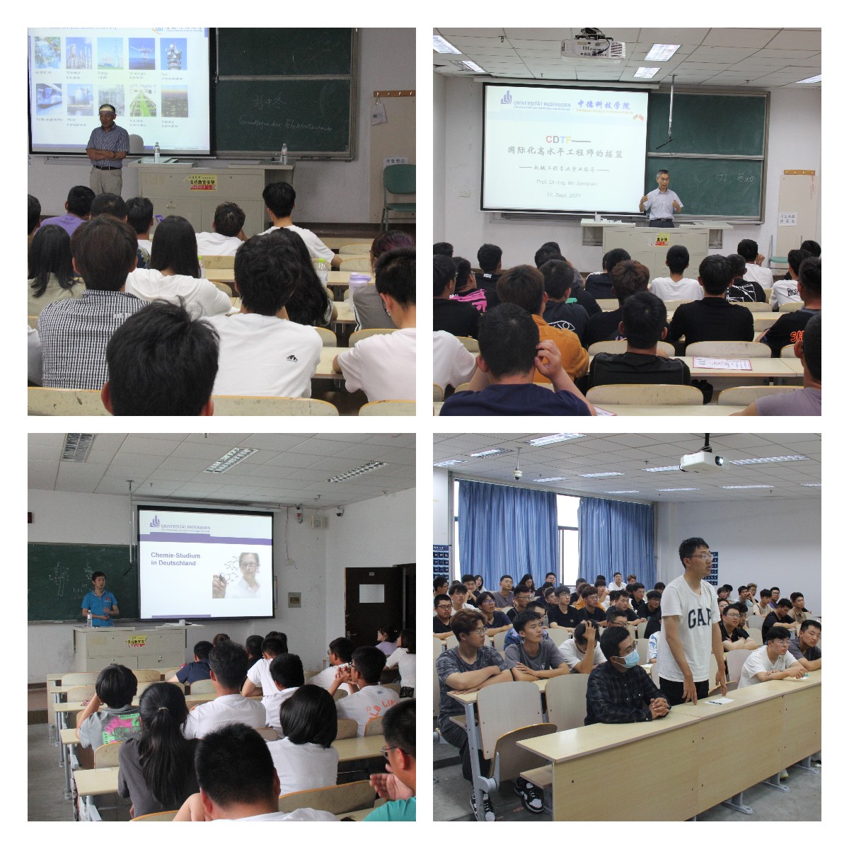 郭建章详细介绍了公司教学安排、学分制、学业预警等有关制度,勉励同学们尽快融入公司,建立专业自信,提高自我管理能力。杨子江分享了自己赴德留学的体会,希望同学们充分发挥中德合办办学优势,提升专业竞争力,为把自己打造成具有国际化视野的国际工程师而努力奋斗。