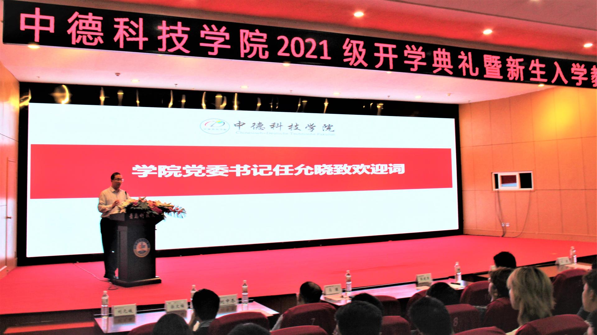 开学典礼在雄壮的国歌声中拉开了帷幕。任允晓对2021级新生的到来表示热烈欢迎和衷心祝贺,并提出四点希望:第一,要做有理想的人,制定学业、留学规划,学有所成,回报社会,报效祖国。第二,要做有道德的人,明大德、守功德,严私德,尊敬师长,学会感恩、学会勤俭;第三,要做有文化的人,学好专业知识,扩宽国际视野,在实践中增长才干;第四,要做有纪律的人,遵守法律法规、校规校纪。