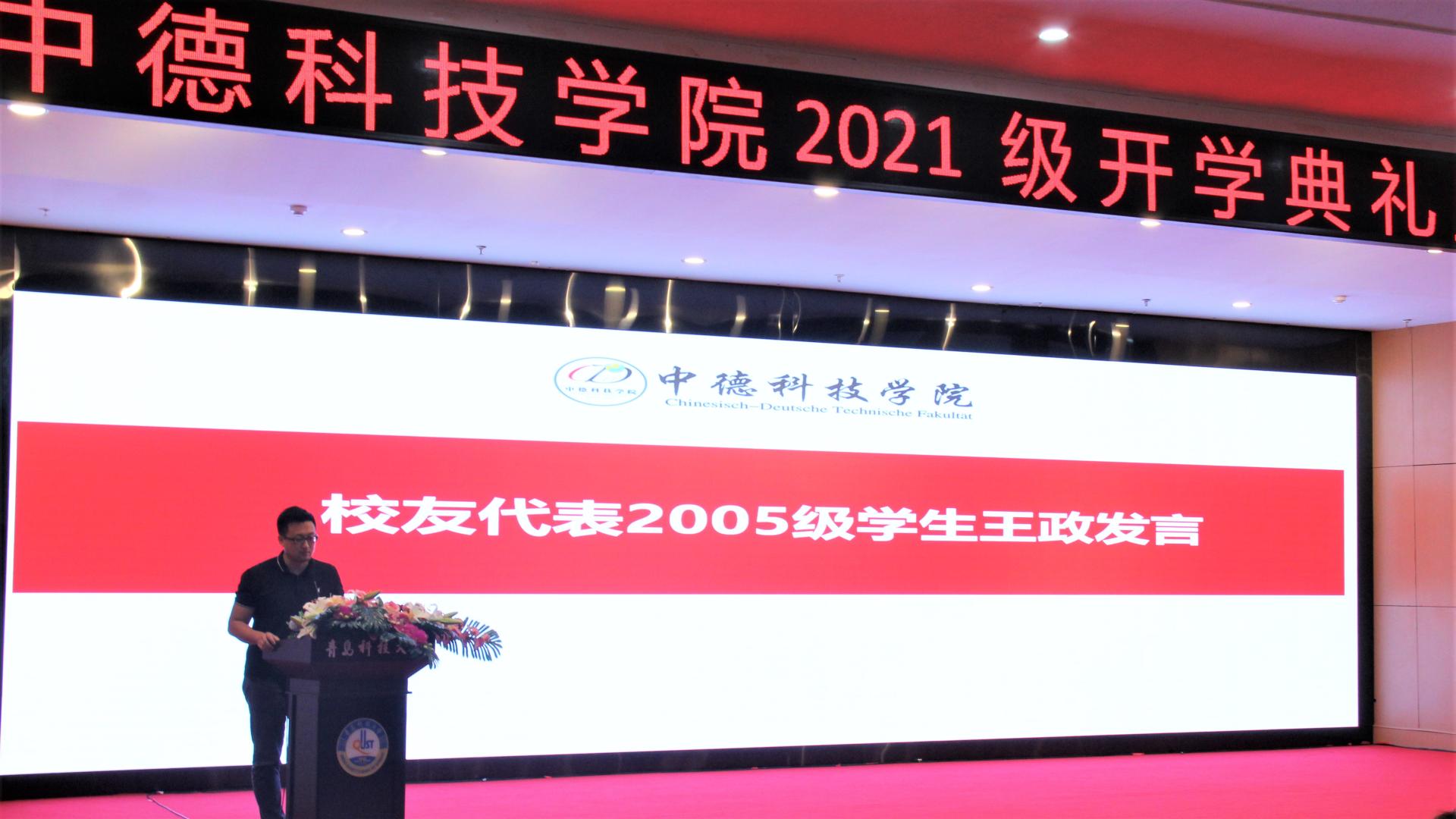 德语外籍教师代表阿诺以幽默风趣的方式介绍了德语的学习方式、方法。2005级员工代表王政以学长的身份从思维转变、赴德留学、就业工作等方面对同学们提出了建议。在校生代表李佳璇、新生代表高乾尧分别发言。