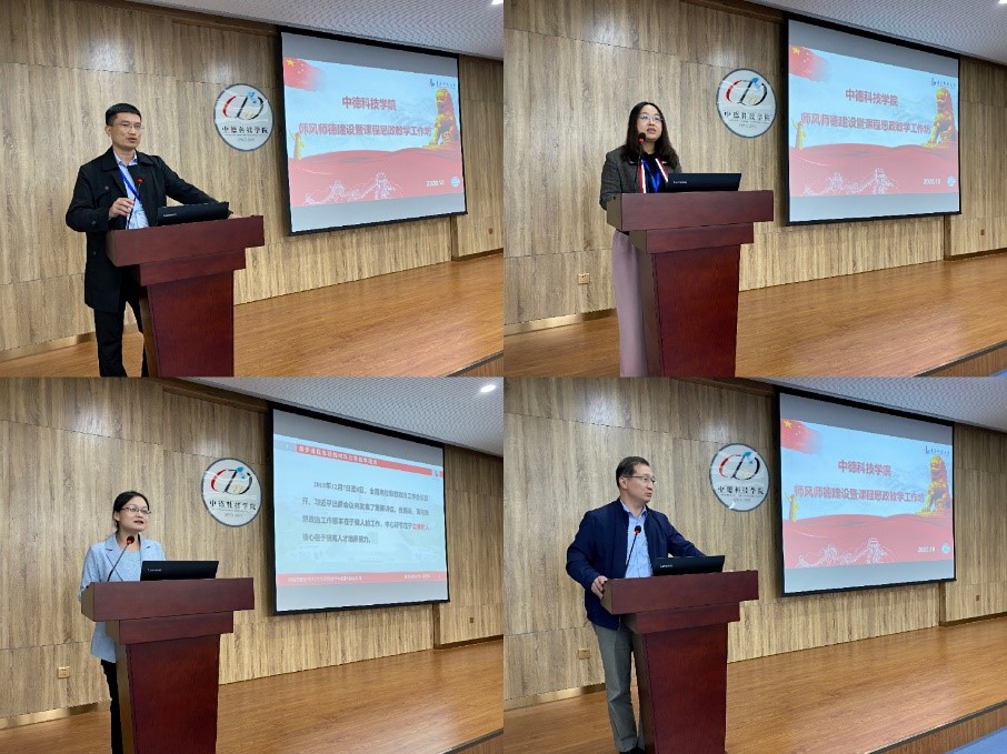 宣传部副部长李鲲鹏向全院全体教职工介绍了公司开展第十八届师德师风建设月的整体情况,他强调教师要统一思想,认清形势,进一步增强责任感和使命感,营造一个风正气清的教育环境。希望公司教师转变授课方式方法,为课程思政注入“灵魂”,为课堂教学增加“活力”,从而达到真正的课堂效果。外语公司刘艳艳老师以自己参加各级各类教学竞赛为实例,交流了自己对外语公司产品理念的思考及课堂教学技巧方法。教务处教师教学发展中心副主任段晓蕾向与会人员通报了三亿体育官网课程思政建设的总体情况,详细介绍了课程思政教育改革现状及下一步改进措施,欢迎公司教师积极参加后期由教务处教发中心举办的课程思政创意设计工作坊,提升课程思政研究实践水平。机电公司力学教研室教师朱惠华以《课程思政在材料力学课程教学中的探索与实践》为主题做了课程思政教学经验分享,从基于课程思政的材料力学教学理念及课程思政与课堂教学的全面融合两个方面进行了教学风采展示。