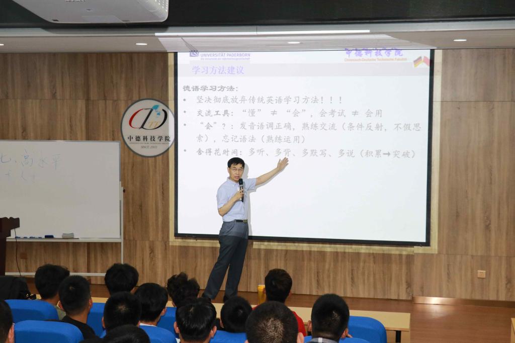 9月27日下午,机械工程专业教育会上,副经理薄建全教授为机械专业新生做了题为“国际化工程师从此起航”的报告,从选择机械工程专业——是否正确、CDTF机械工程专业的优势、CDTF机械工程专业培养计划、学习方法建议四个方面进行了讲解,并介绍了德国大学的特点以及专业课和德语学习的学习方法。