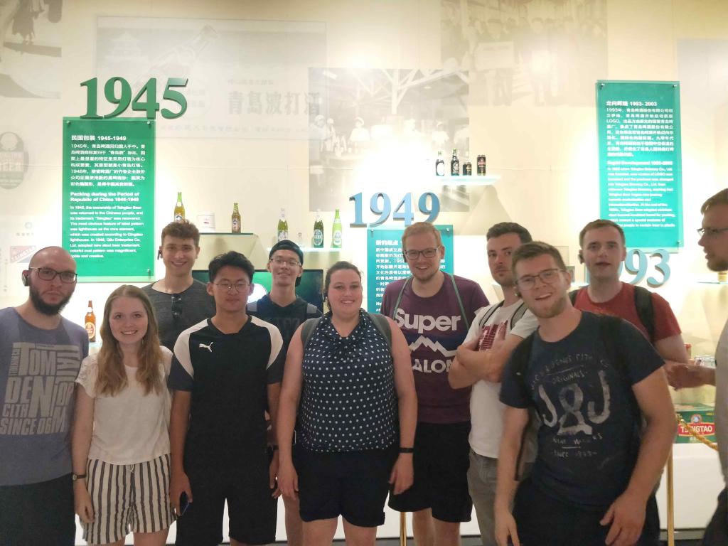 博物馆讲解员讲解了青岛啤酒的历史和发展,参观了博物馆A馆和B馆。A馆历史文化核心区,承载着青岛啤酒百年历史和文化,收藏了大量的历史资料、图片、文物,展示着中国青岛啤酒文化百年历史发展历程,最宝贵的是中国现存最早的商标注册证。B馆酿造工艺区主要展示的是青岛啤酒酿造生产工艺,体会了青岛啤酒酿造工艺发展的各个阶段,探索青啤百年酿造工艺艰难历程,青岛啤酒厂的老厂房图片和古老的酿造设备,真实的车间生产环境和现代的全息影像,再现老发酵池工作场景,以及现代化的青岛啤酒生产线。师生们通过新老设备的对比,了解了青岛啤酒工业制造的工艺发展历史。通过参观学习,公司外教和职工对青岛的啤酒文化有了更深入的了解。参观过程中,外教和职工与公司员工交流了中德两国文化。