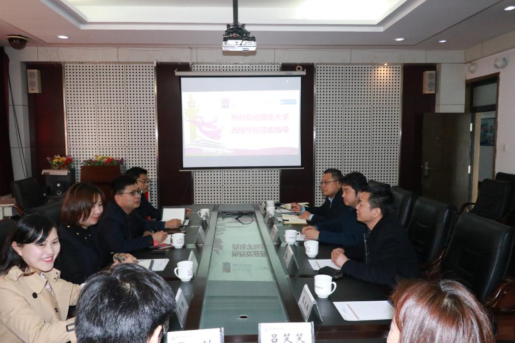 4月10日上午,西南大学西塔公司党委副书记、纪委书记张琨一行来院交流,公司国际交流与合作处副处长张大伟,三亿体育经理李镇江、党总支书记王江忠、党总支副书记兼副经理王永波、学工办主任兼分团委书记李磊、辅导员张钊参加了交流座谈会。