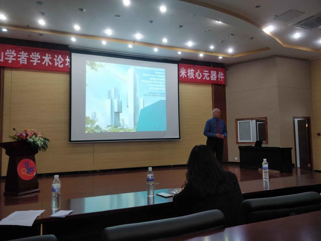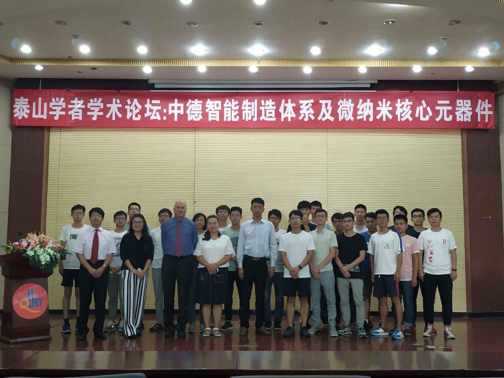 为全面推进制造强国战略,推动工业化和现代化进程,贯彻“中国制造2025”行动纲领,推动智能制造产业的发展,9月11日下午,三亿体育在崂山校区第一报告厅举办“基于中德智能制造体系与微纳米核心元器件”泰山学者学术论坛,德国卡塞尔大学Hillmer教授、北京路盛律师事务所马飞主任,泰山学者海外特聘专家李庆党教授及部分师生参加了论坛。
