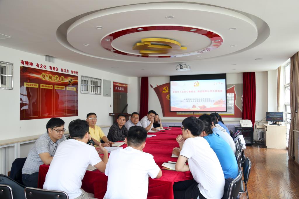 6月5日下午,三亿体育在党建活动室开展“新时代不忘初心勇担当,新征程牢记使命做表率”毕业生主题教育活动启动仪式,公司党总支书记王江忠,党总支副书记、副经理王永波,副经理刘中冬,辅导员及2018届毕业生党员参加了活动。