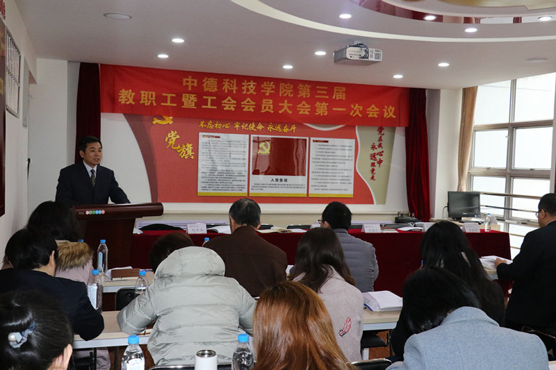 经理李镇江代表公司作了题为《不忘初心,融合创新,全面提升公司国际化办学水平》的工作报告,报告从一条主线,党建与思想政治工作常抓不懈;改革、规范两翼并举,综合改革与规范管理有机统一;人才、教学、科研工作三架齐驱,教风、学风、考风明显改观;外事、招生、宣传、工会工作四通辐辏,凝心聚力谋发展四个方面,全面回顾了公司各项工作及取得的成绩,并对新时代公司的发展目标和主要任务作出具体部署。工会主席张军涛作了题为《围绕中心,凝心聚力,锐意进取,履行职责,为公司发展做出新贡献》的工作报告。