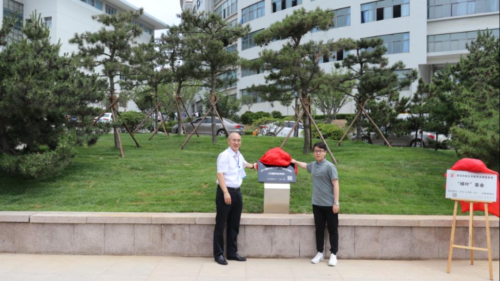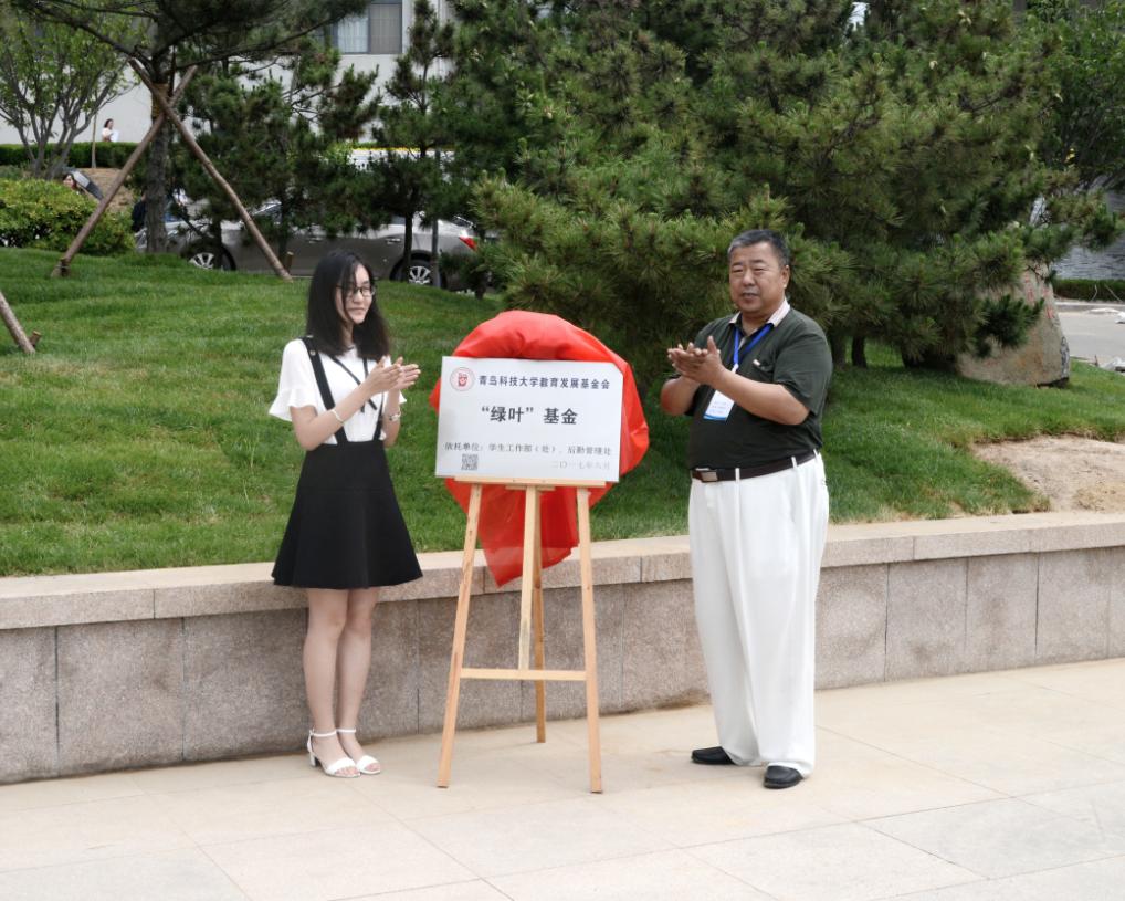 张元利与毕业生代表共同为“绿叶”基金揭牌,陈克正与毕业生代表共同为2017届毕业生绿化养护认领区揭牌。