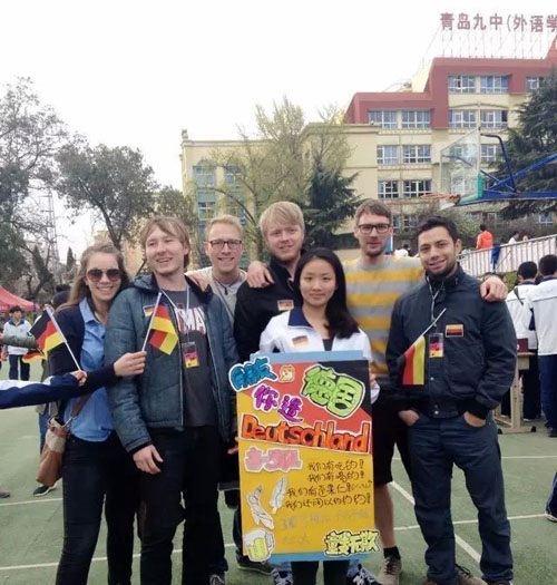 近日,中德公司8名德国职工应邀赴青岛九中,参加该中学举办的国际风情周活动。该校各个班级随机选择一个国家,在国际风情周期间,展示所代表国家的风俗文化。中德公司的职工,加入了其中代表德国的班级,在该校掀起了一个德国风情小高潮。通过参加这项活动,德国职工亲自了解体验了国内中学的状况,增长了见识,同时也展示了中德公司在国际化人才培养交流方面的风采。