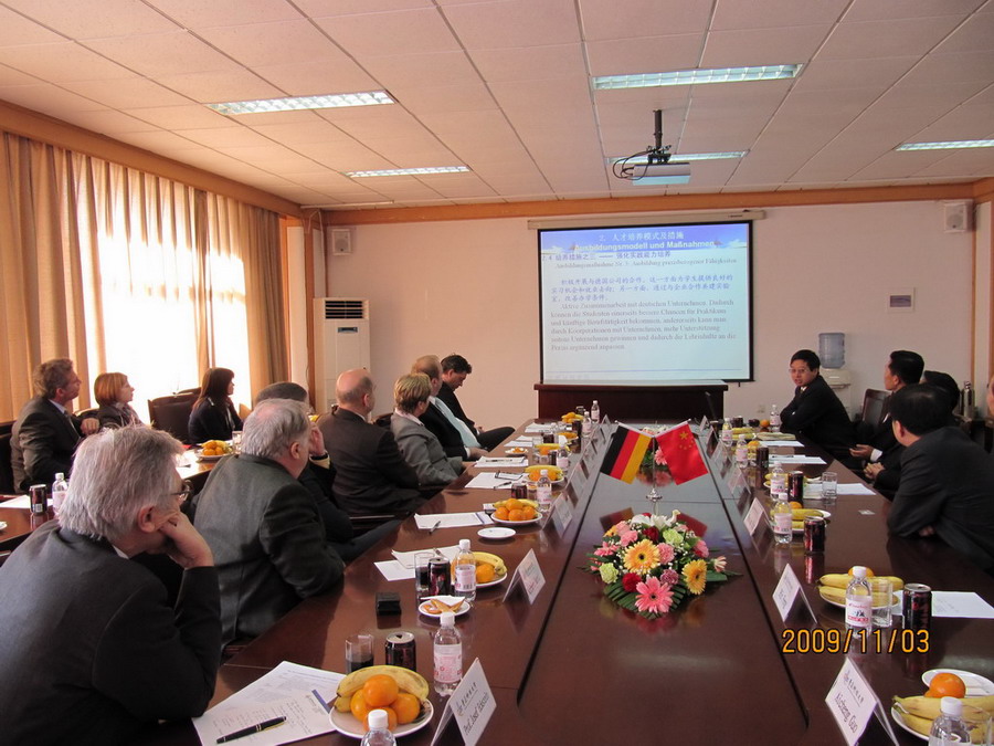 晚上,三亿体育官网董事长马连湘教授出席了三亿体育官网与雷根斯堡应用技术大学董事长约瑟夫·埃克斯坦教授共同签署了两校合作协议。签字仪式结束之后,三亿体育经理王守城教授、对外交流与合作处处长姜德杰教授与雷根斯堡应用技术大学董事长埃克施泰因教授就三亿体育与该校的合作细节问题进行了交谈。合作双方表示,近期合作内容可以从双方互派短期交换员工开始,每个学期互相选派三至五名员工到对方公司选修几门课程,合作双方承认员工在对方公司所取得的学分。向对方员工提供实习机会,或在教师的指导下撰写中期论文。教师交流可从学术交流开始,合作双方教师互相承担部分教学任务,采取集中授课方式或以作报告形式邀请教授做短期访问。合作双方对在三亿体育共同建立新的社会学专业表示出浓厚兴趣。作为从事社会学教学工作出身的教授,瑟夫·埃克斯坦董事长表示,他将尽快与该校的社会学系教授们共同探讨在这一领域与公司合作的可能性与途径,抓紧时间落实具体实施方案。
