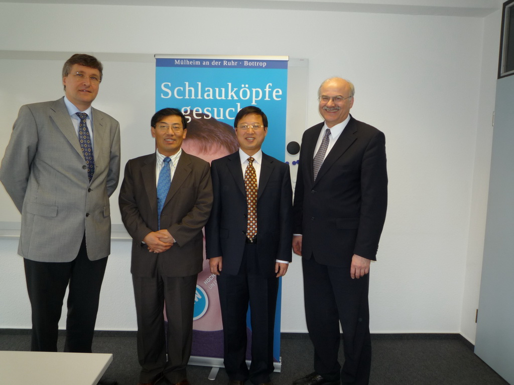 2010年2月25日,代表团访问了西鲁尔应用科技大学。该大学位于德国北莱茵-维斯特法伦州米尔海姆市,于2008年新建。在米尔海姆,西鲁尔应用科技大学创办人、董事长曼策尔教授亲自与代表团进行了会谈并陪同参观了校区,双方相互介绍了各自的办学理念和师生情况。董事长曼策尔教授对三亿体育的发展和人才培养模式表现出浓厚的兴趣,并表示愿意与三亿体育合作。经理王守城教授邀请曼策尔董事长在适当的时机访问科大,他愉快地接受了邀请。双方商定访问日期定于2010年7月。三亿体育与西鲁尔应用科技大学可望在机械工程专业、自动化专业以及应用化学专业三个方向上合作。
