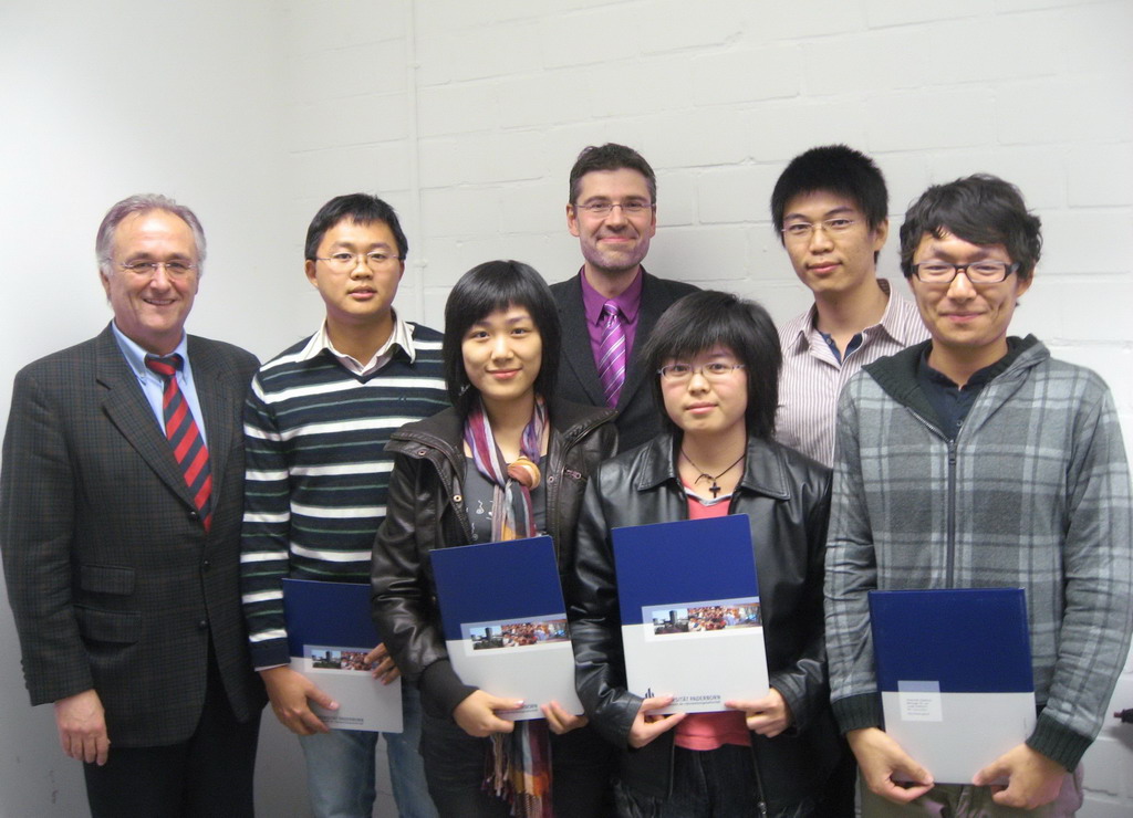 帕德博恩大学机械系教授施密特博士(Prof. Dr.-Ing. Hans-Joachim Schmid)对公司获奖同学所取得的优异成绩表示高度赞扬,并向张媛等五位获奖同学颁发了由德意志学术交流中心(DAAD)提供的每月400欧元,总期限为一年的奖学金证书。张媛等同学非常高兴获得此项殊荣,获奖之后他们表示将继续努力,以优异的成绩顺利完成硕士阶段的学业。