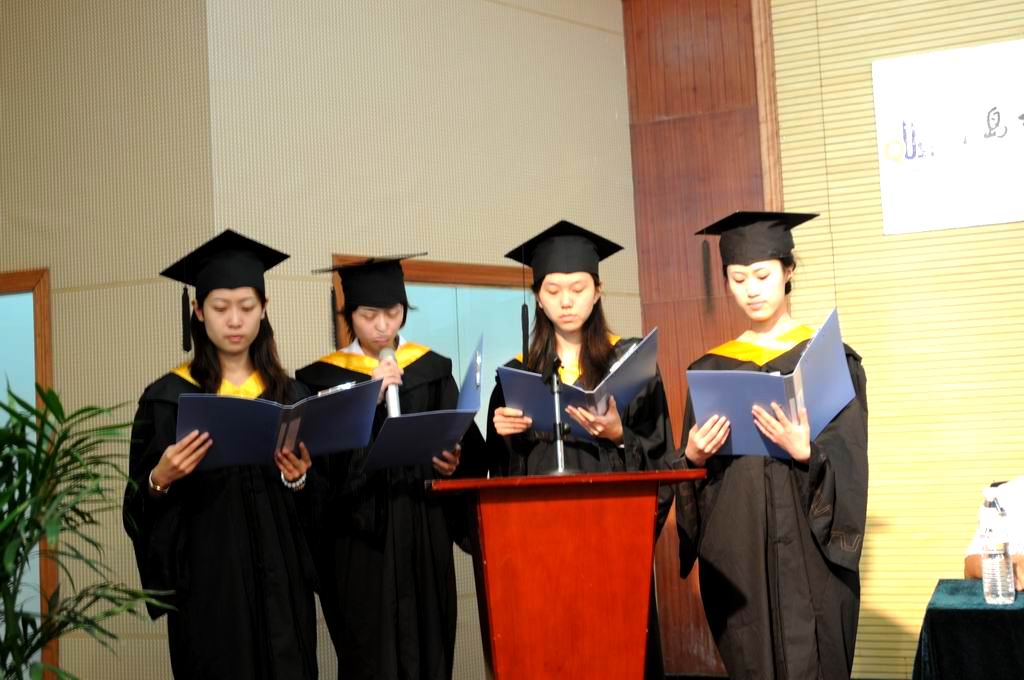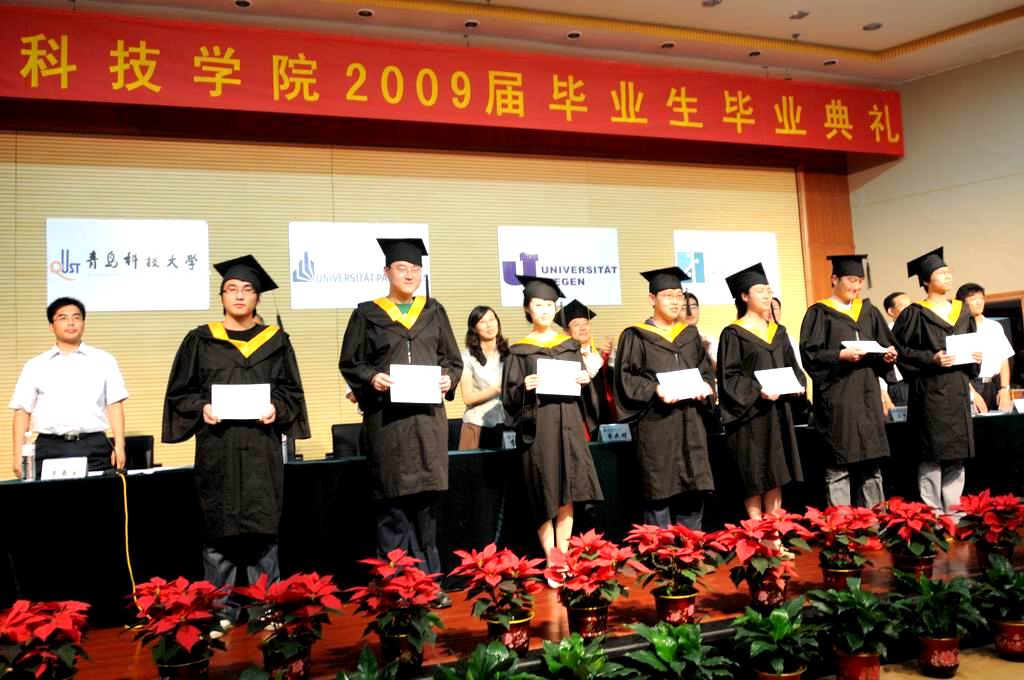 毕业典礼在毕业生纪念片《88个春天——中德2009届毕业生纪念册》中拉开帷幕,伴着优美的《栀子花开》音乐,每一个记录着同学们五年生活的镜头带领大家再一次回顾了大学几年的青春印记,回顾了同学们曾走过的路,回顾了真诚相对过的同窗好友,回顾了母校的点点滴滴,花花草草。
