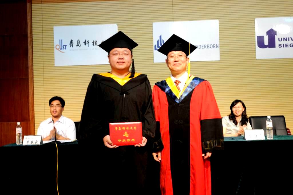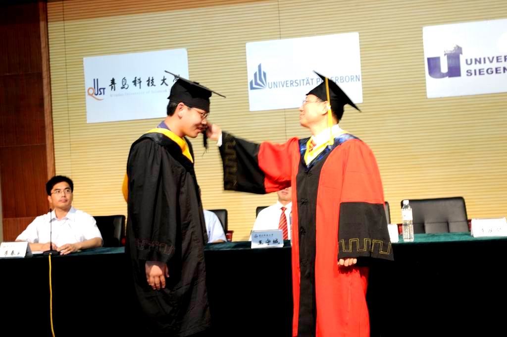 毕业典礼上经理王守城代表公司全体师生员工向圆满完成学业的81名毕业生同学表示最热烈的祝贺。向为培养广大同学而付出了辛勤劳动的广大教职员工、家长和社会各界表示最衷心的感谢。王守城在讲话中回顾了同学们在校学习五年来公司的发展历程,他指出,这五年是公司和公司历史上发展最快的五年,公司顺利通过了教育部本科教学水平评估,本科生规模保持稳定,研究生规模逐步扩大,新生生源质量进一步提高;公司顺利通过了德意志学术交流中心和中华人民共和国教育部的评估及复核验收,取得了教育部颁发的中外合作办学许可证书;在与帕德博恩大学合作的基础上,公司又先后与科布伦兹应用科技大学和锡根大学签订合作办学协议,从而走上了规范化、多元化发展的轨道;公司的团队建设取得了重大突破,合作办学专业由一个增加到三个,员工出国人数逐年增加;团队队伍建设取得较大进展,目前德语教师人数已经达到25名,其中签约德籍教师9名;几年来中德双方的学术交流不断加强。讲话中,王守城向毕业生提出三点希望,一要秉承传统,务实创新。他指出科大以"实"建校,以"实"兴校。希望同学们牢记母校“吃苦耐劳,坚忍不拔,朴实无华,甘于奉献,同心协力,勇承重载”的橡胶品格,在各自的领域里不断取得新的成就。二要海纳百川,追求卓越。他指出一滴水只有溶入大海方显生命和活力,同样,一个人只有融入团队才会发挥出更强大的力量。希望同学们在今后的学习和工作岗位上既要谦虚谨慎、不骄不躁,又要海纳百川,善于听取不同的意见。要胸怀祖国、放眼世界,为民族的崛起,为国家的繁荣做出应有的贡献,无愧于科大人的称号。三要留住梦想,谨慎选择。他指出激情与梦想是青年人的宝贵财富,人生的选择总是与责任同在。面对全球化竞争中建设创新型国家的艰巨挑战,面对中华民族伟大复兴的历史机遇,我们都必须勇于面对现实,勇于承担责任;决不逃避,决不弃权。只要坚持不懈地做事,最后终能成功;若不做事,则肯定不会成功。王守城在讲话最后指出科大永远是我们大家共同的家园,希望同学们常回来看看,衷心祝愿同学们身体健康,工作顺利,家庭幸福,事业有成!