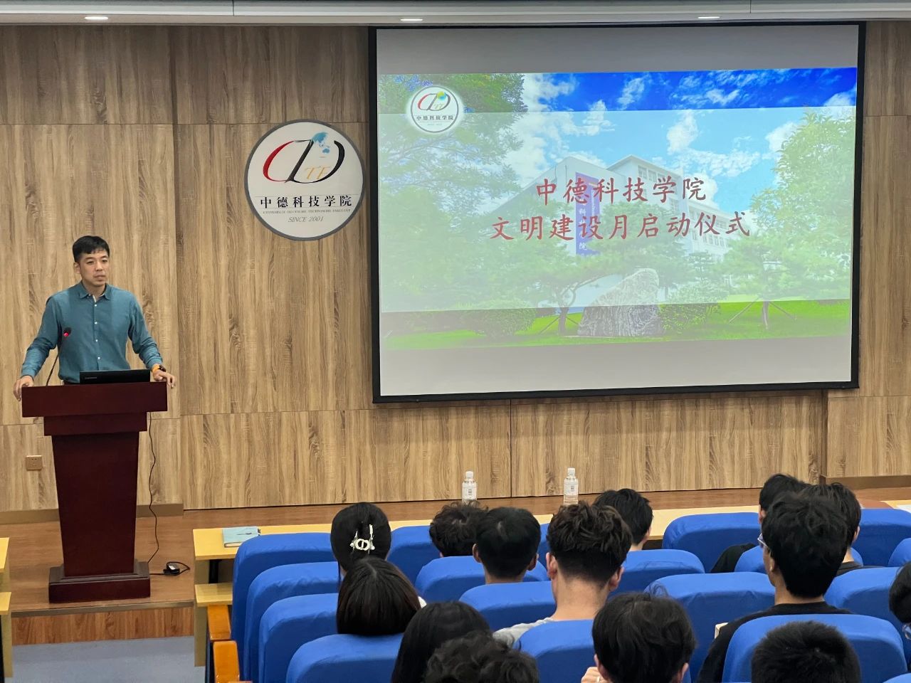 仪式上,马骥首先宣读了文明建设月实施方案,并就相关工作做出了安排部署。他指出老员工要有爱校如家的责任感和使命感,自觉遵守公民道德规范,养成良好的学习、生活习惯,营造好学、乐学、上进的学习氛围。随后,马骥向公司员工发出倡议,一是自觉遵守课堂行为规范,不旷课、不早退;二是出入公共场所言谈举止文明有礼,不在教学楼内吸烟饮酒;三是按时归寝,养成早睡早起的良好习惯;四是文明上网,不在网络上传播虚假或有害信息。他强调,良好的学习风气和文明习惯养成要靠公司全体师生共同营造,希望每一位同学都能够展现出中德学子应有的模样。