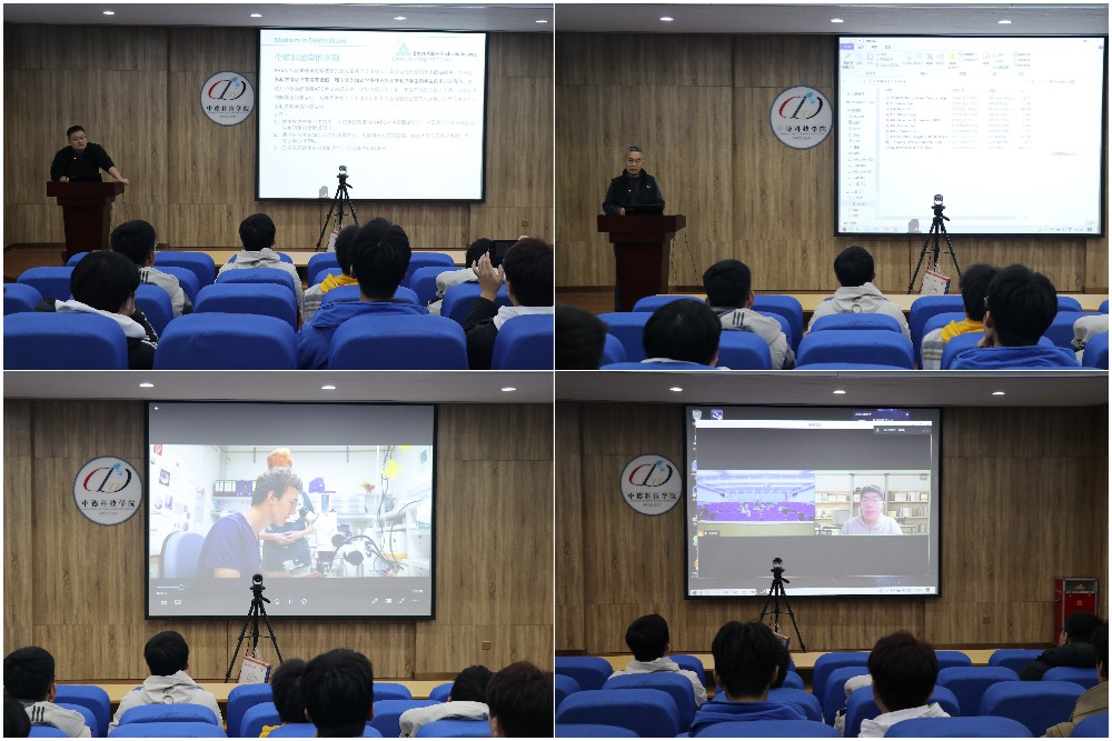 2023年赴德学习、德国伊尔梅瑙工业大学在读员工梁博通过视频连线的方式分享了目前在德学习、生活情况,同时结合个人经历与感悟,从语言学习技巧、学业规划等方面给在场的学弟学妹们提供了建议。