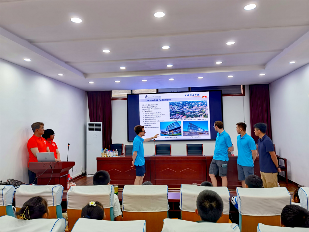 接下来,在曲之超教授的翻译下,德国职工们为孩子们介绍了德国的标志性建筑、自然风光及特色美食,孩子们被深深地吸引,争先恐后提出他们感兴趣的问题,职工们耐心地一一解答。队长李佳潼借机询问孩子们的理想是什么,不少孩子表示要好好学习,考上理想的大学,也有的表示想去德国看一看。李佳潼鼓励孩子们用知识武装头脑,待学成后投身乡村振兴和祖国建设中去。