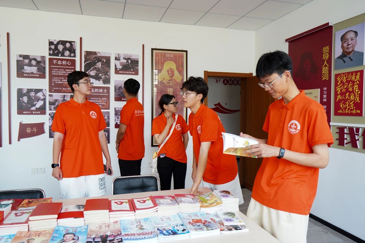 走进徐村社区综合服务中心,斑驳如墨的墙面沉淀着徐村党建工作的开展,青砖和瓦砾,在阳光的照射下,大楼与错水河相映生辉。徐村社区服务中心兼具多种功能于一体,设有党群服务中心、便民服务大厅、乡村记忆馆等,承载解决村民政务生活的重要职能,也是进行各种党建生活的重要场所。团队从徐村村委成员杨美娟那里了解到:徐村新村确立了”一家人、一条心、一件事、一起拼、一起赢”的理念。在新村融合发展试点工作中,徐村党委提前谋划,把盘活网格村资源与壮大村集体经济有机融合,让发展的成果惠及父老乡亲。在社区综合服务中心五楼报馆,包含各种主题的八连版连体报让调研团叹为观止。让队员们最为震撼的是一列由每一期记录党代会的报纸所组成的书墙,墙上记载着从中共一大到中共二十大跨越百年的会议历程,带领队员们回顾了党的百年发展史,也让队员们受到了一次难得的党史教育。