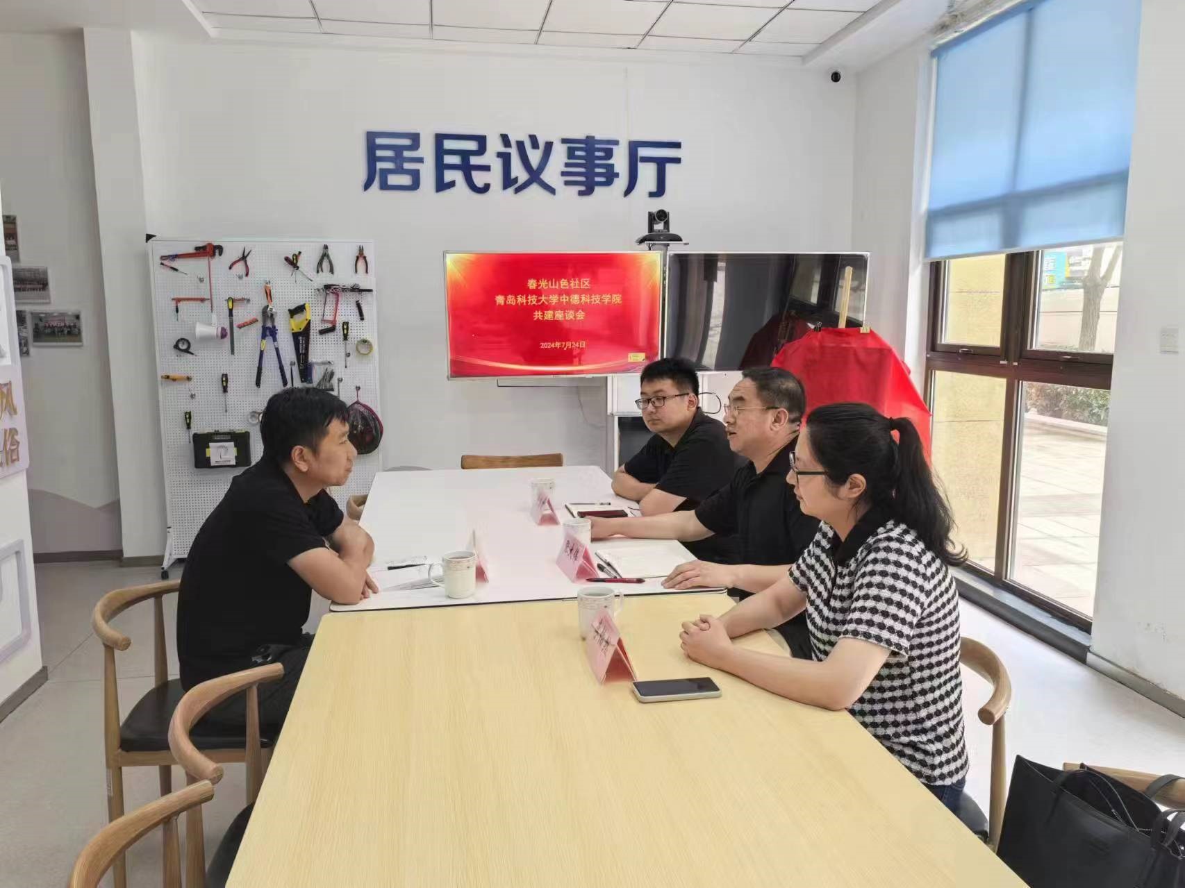 于九州热烈欢迎张大伟一行到访春光山色社区,介绍了社区的居民规模、党建工作、社区管理等基本情况。张大伟感谢社区为公司老员工提供宝贵的社会实践场景,表示将与社区携手做好团员青年积极参加社会实践活动的教育引导。随后,张大伟介绍了公司办学、人才培养、服务国家区域经济社会发展等方面的鲜明特色。李怡然介绍了公司“百万老员工进社区”社会实践重点项目开展情况和志愿服务计划。