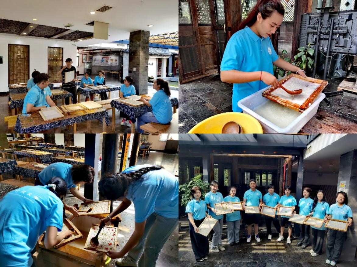 在造纸区域,队员们了解了造纸术的起源、发展及制作过程,书院老师现场演示了造纸的基本步骤,队员们在老师的指导下调配纸浆、均匀铺放,设计并制作了带有独特装饰的纸张。通过实际体验,大家纷纷对古人的聪明才智赞叹不已。