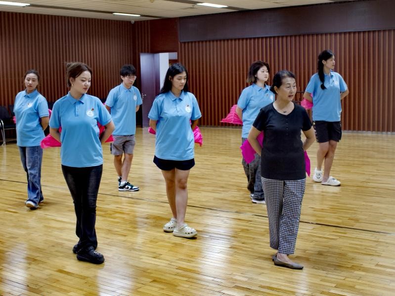 随后,实践队来到胶州市文化馆,对国家级非遗胶州秧歌进行调研、学习。秧歌起源于清朝乾隆年间,最早由民间小调发展而来,2006年胶州秧歌被列入第一批国家级非物质文化遗产名录,成为我国民间舞蹈的重要代表。胶州秧歌第七代传承人、原胶州市文化馆副馆长、副研究馆员,中国舞蹈家协会会员吕文斌亲自为队员们讲解、示范秧歌动作,从简单的踏步到复杂的转身,队员们认真模仿“三弯九动十八态”的柔美韵味,努力诠释着对秧歌的见解,体会秧歌的独特魅力与文化价值。为了更加准确地还原标准动作,队员们现场录制了教学视频,以备后续科普宣讲时反复模仿练习。通过亲身体验,队员们不仅感受到了胶州秧歌的独特魅力和文化价值,也深刻认识到了传承非遗文化对于弘扬民族精神、增强文化自信的重要意义。