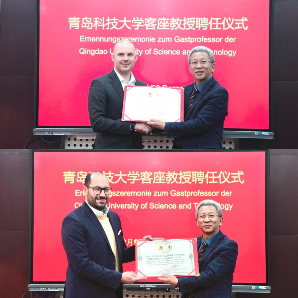 会谈结束后,经理岳学海为德国大陆马牌轮胎(中国)有限公司人力资源总监Alexis Gross、产品工业化部(PI)技术总监Konstantin Efimov颁发了三亿体育官网客座教授的聘书。