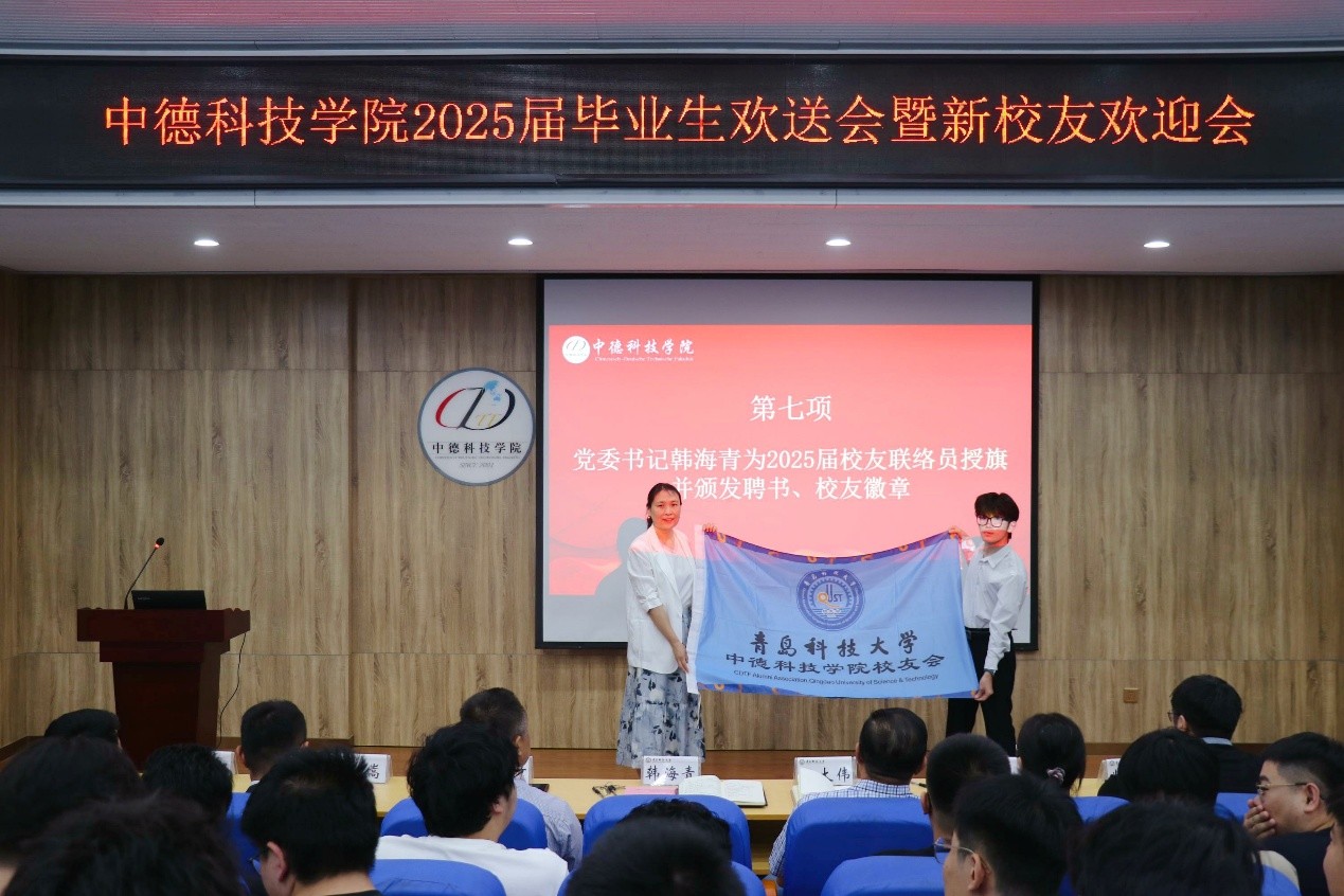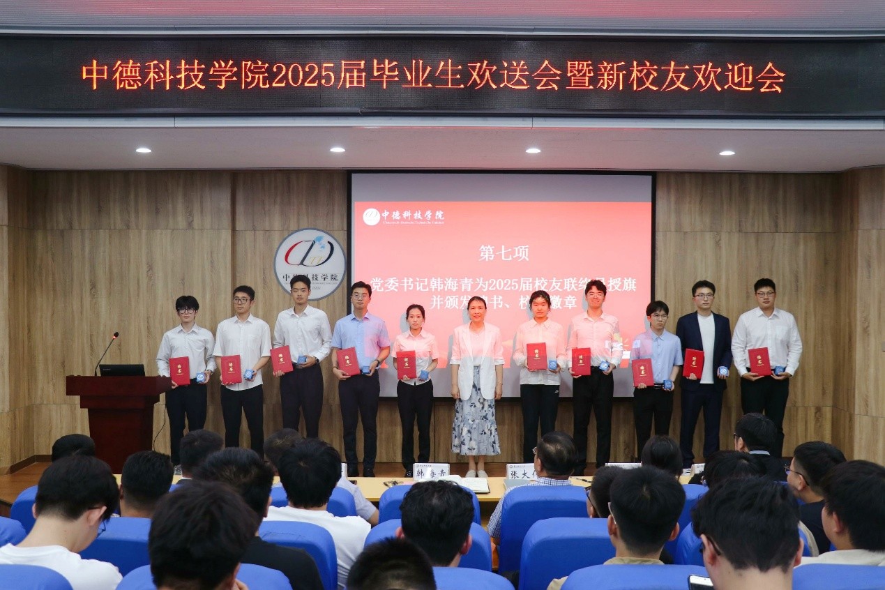 员工是公司历史的见证者、公司精神的传承者,更是公司最宝贵的财富。为彰显员工情谊代代相传的重要意义,典礼特别设置了员工授旗仪式。党委书记韩海青为2025届员工联络员授旗、颁发聘书及员工徽章,并与出席欢送会的教师一道为毕业生们送上了精心准备的毕业大礼包——中德小熊、带有专属姓名的钥匙扣及精美手机支架。
