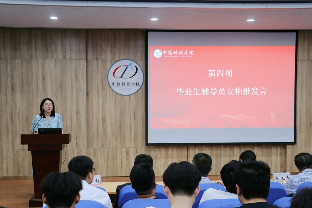 2006级机械工程及其自动化专业杰出员工、小慕(青岛)信息科技有限公司总经理、Safety Tax Free GmbH中国区首席运营官刘嵩,分享了求学创业历程,并就升学、就业、创业三条路径提出了宝贵建议,强调了持续学习、坚持锻炼、学好外语的重要性,鼓励学弟学妹们保持好奇、勇敢挑战;毕业生辅导员安柏雅满怀深情,表达了对毕业生同学们的不舍牵挂,回顾携手奋斗、并肩前行的难忘岁月,希望同学们接纳生活不完美、明确自身定位、找准前行方向,站得更高、看得更远;员工代表姜博宇心怀感恩,抒发了对母校与老师的感激之情,回忆了四年老员工活的桩桩件件,期望自己与全体毕业生勇敢迈进、铭记母校情谊、绽放耀眼光芒。