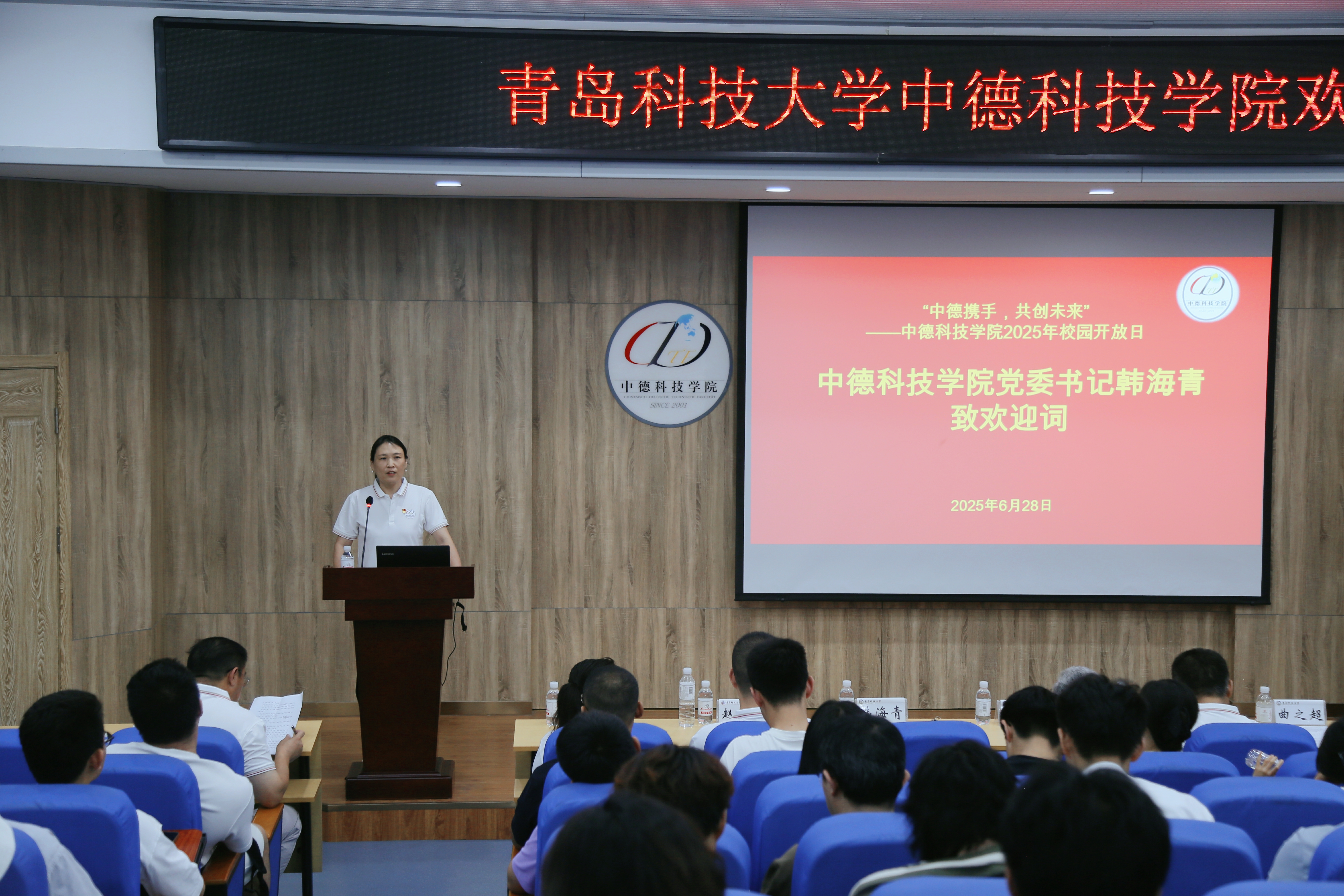 党委书记韩海青代表公司全体师生向各位考生及家长表示热烈欢迎和衷心祝贺。她以“公司三大办学特色”和“中德合作办学优势”为主线,生动展现了公司深厚的办学底蕴与鲜明特色。她提到,公司作为中德合作办学的成功范例,为员工提供了国际化的发展平台。她建议考生及家长们要认真回顾过往学习经历,全面总结经验,深入思考如何借助公司优势,开启人生新的精彩篇章。