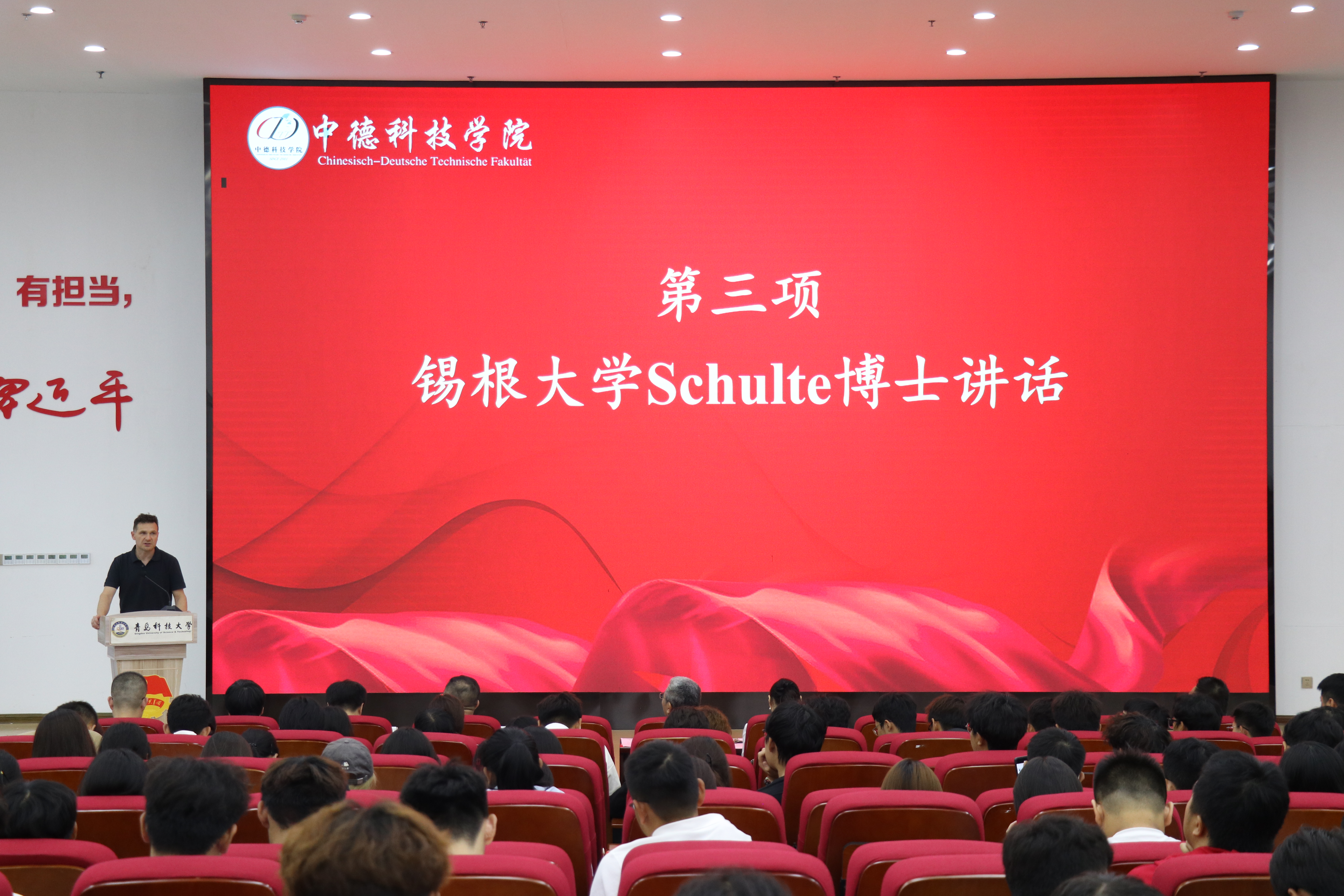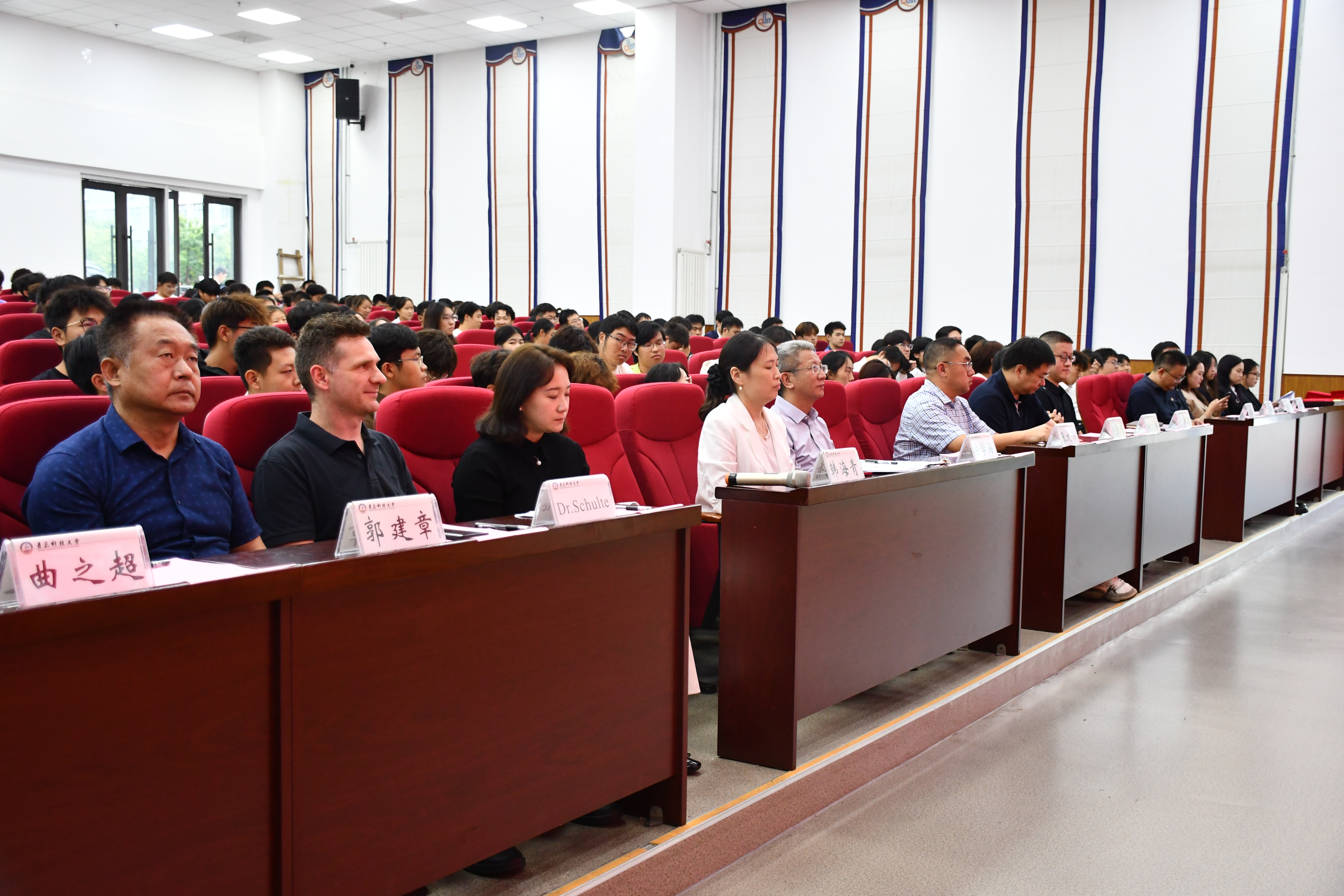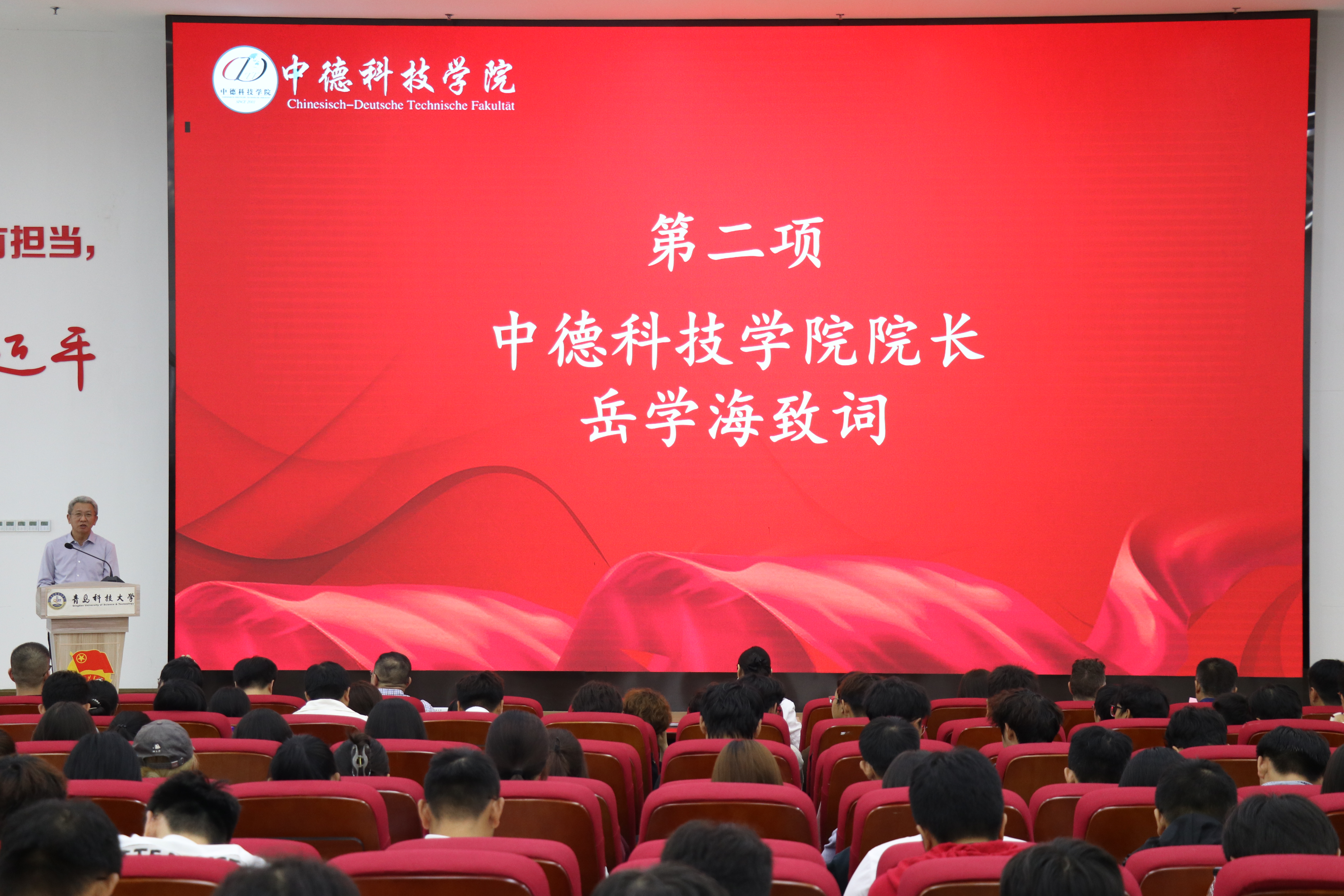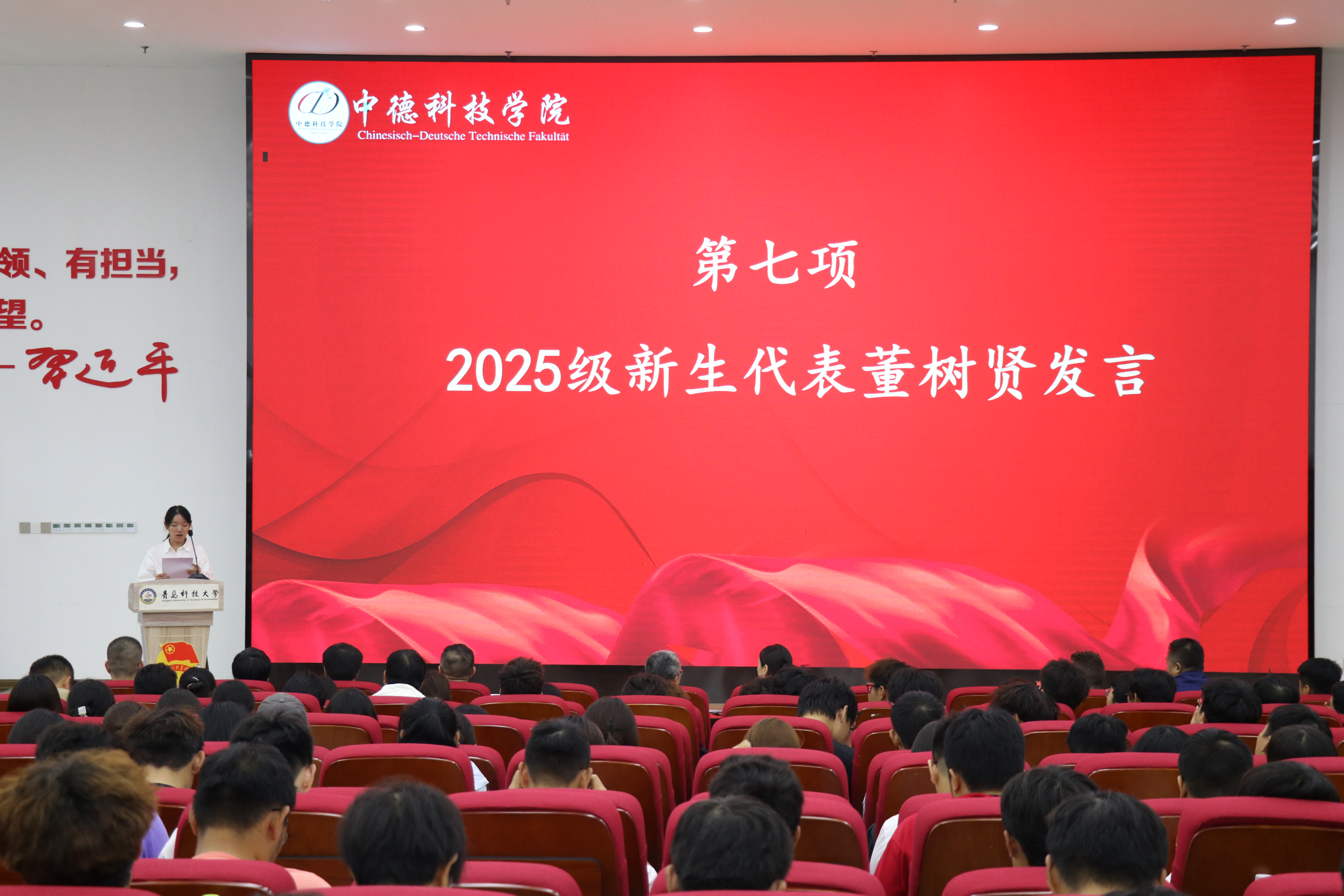 9月23日下午,2025级新生开学典礼暨德语等级考试成绩优异员工表彰仪式在崂山校区北苑团学报告厅举行。公司党政领导班子成员、德国锡根大学代表、教师代表以及2025级全体新生参加开学典礼。