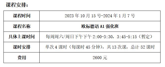 亲爱的2023级同学,热烈祝贺大家在三亿体育开启人生新的征程。应2023级新生及家长的需求,三亿体育语言培训与考试中心计划于2023年下半年开办欧标德语A1强化班,该课程为线下小班授课,班额15人左右。