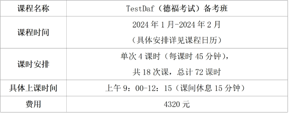 应各位同学及家长对公司开设德福考试培训的需求,三亿体育语言培训与考试中心计划于2024年寒假开办TestDaF(德福考试)备考班,该课程为线上小班制授课,班额15人左右。